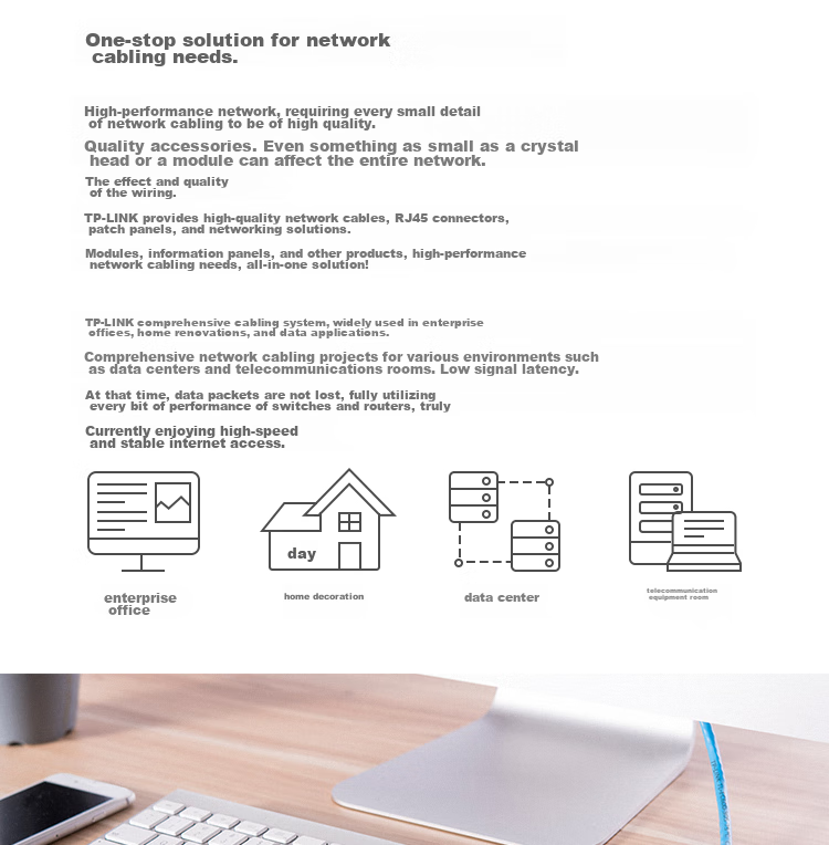 TP-LINK ITL-EF5e01 is a high-quality comprehensive cabling solution designed for networking applications. With superior materials and advanced design, this product exceeds international standards and ensures reliable performance for various environments such as offices, homes, data centers, and telecom facilities. The tool-free installation and durable construction make it a dependable choice for achieving fast and stable network connections. Trust TP-LINK for all your networking needs.