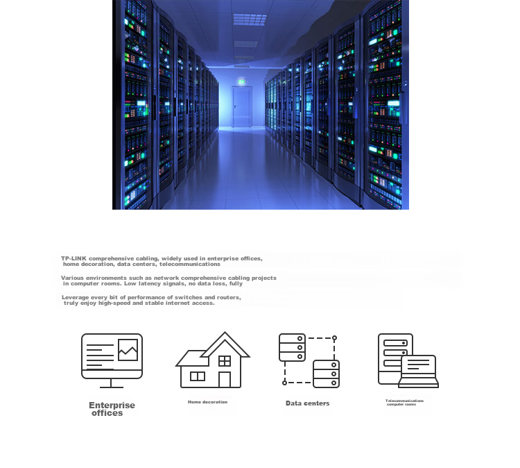 TP-LINK comprehensive cabling solutions ensure high-quality components for every aspect of network cabling, from crystal heads to modules, to guarantee optimal network performance and quality.