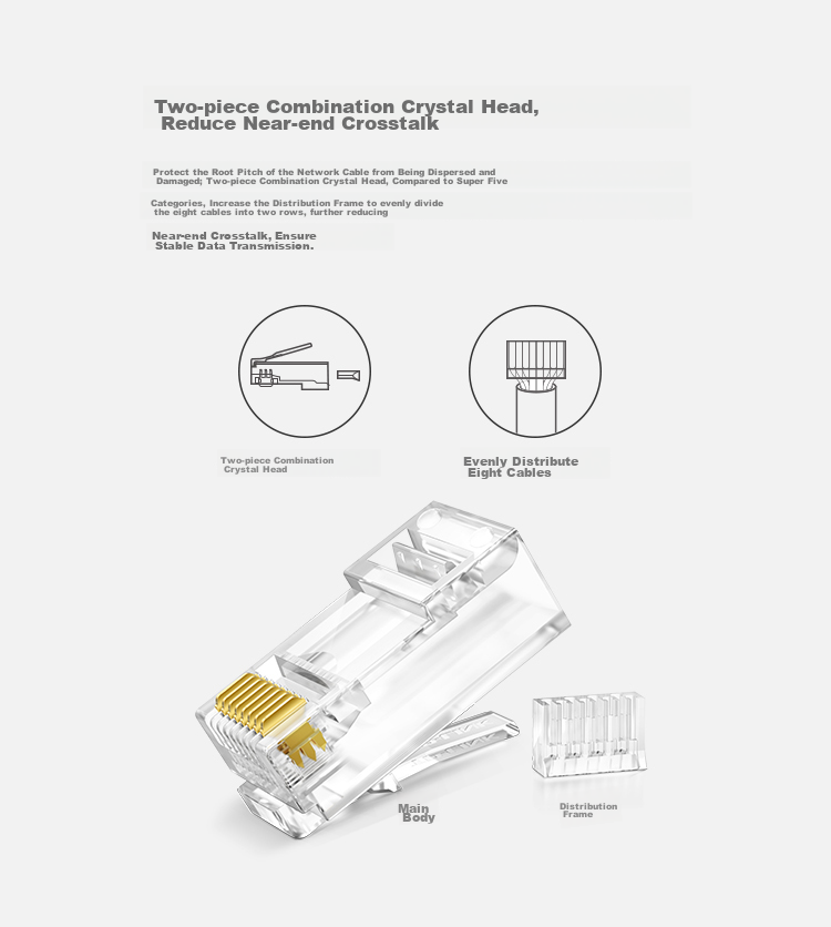 - High-quality crystal heads for network cabling