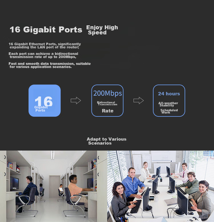 Each port supports up to 200Mbps full duplex transmission speed