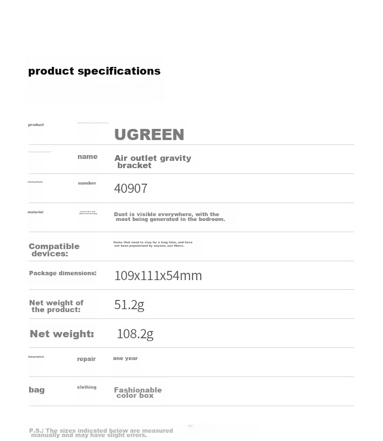 *Note: Dimensions are manually measured and may have slight errors.*