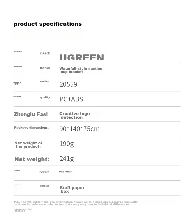 **Note:** The weight and dimensions provided are manually measured and for reference only. Actual data may vary due to individual differences and environmental changes.