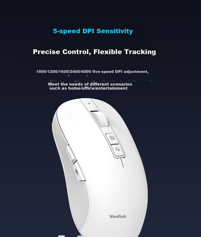 **DPI Sensitivity:** 5 levels (1000/1200/1600/2400/4000) for precise control in different scenarios