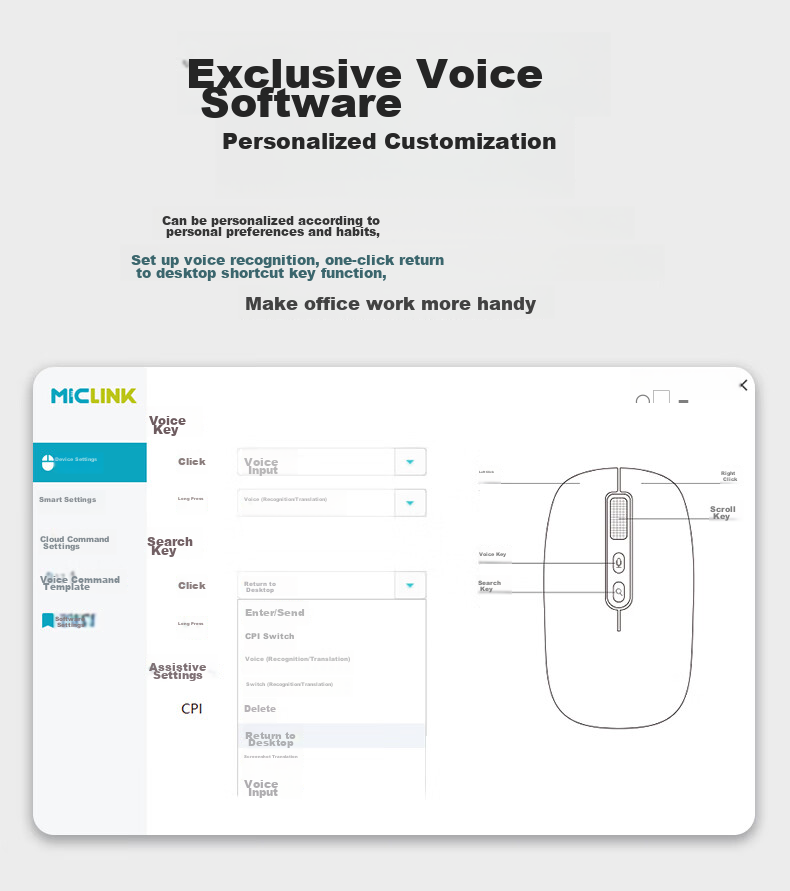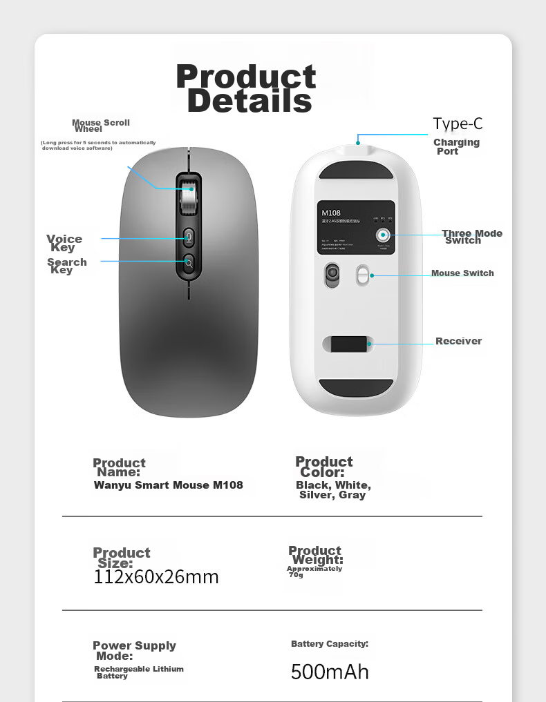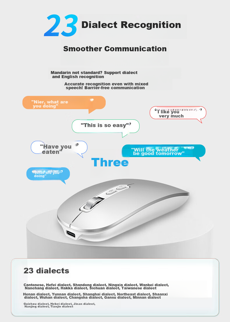 - Intelligent voice mouse with wireless Bluetooth triple mode