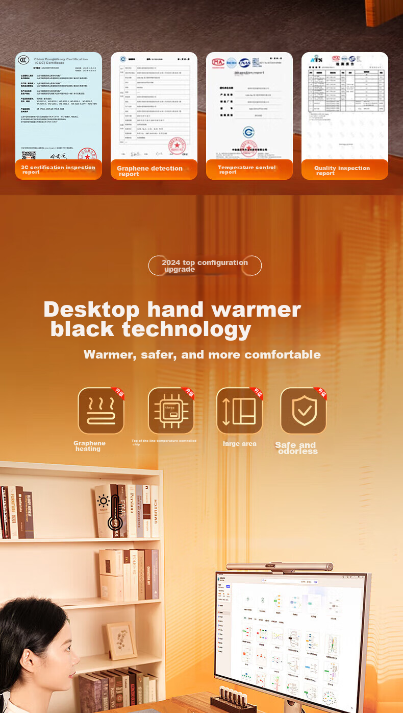 - Rapid heating, covering the entire desk in 1 second