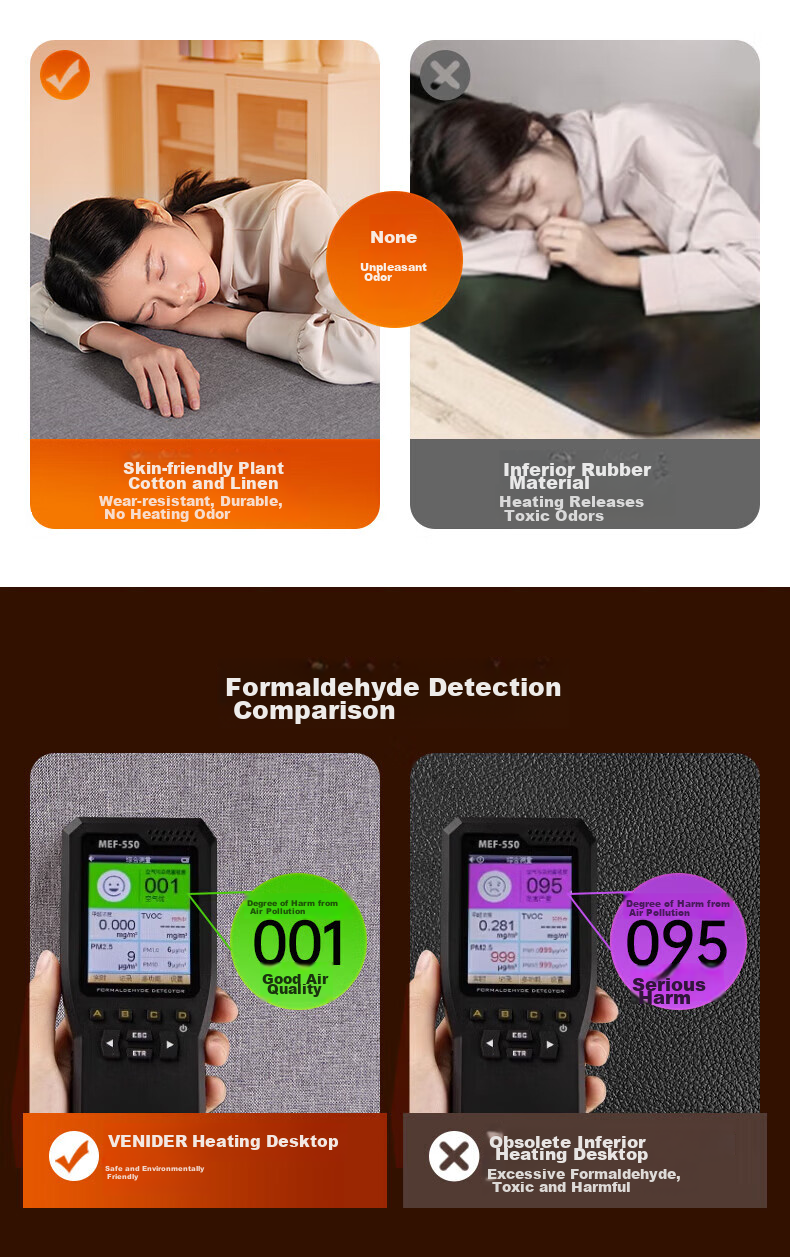 - The product is designed to eliminate common issues with inferior heating mouse pads such as small heating areas, safety concerns, odors, and color fading.