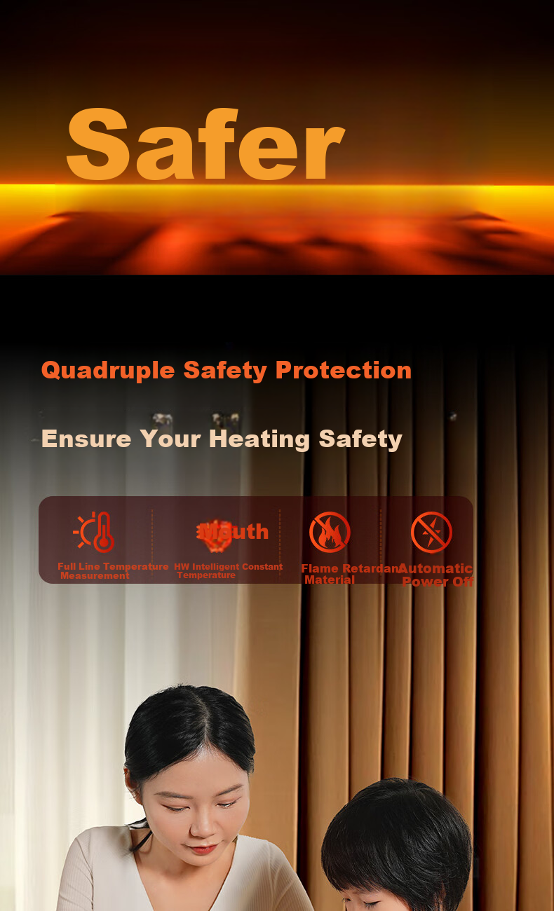 - Fourfold safety protection including HW intelligent constant temperature chip and flame-retardant materials