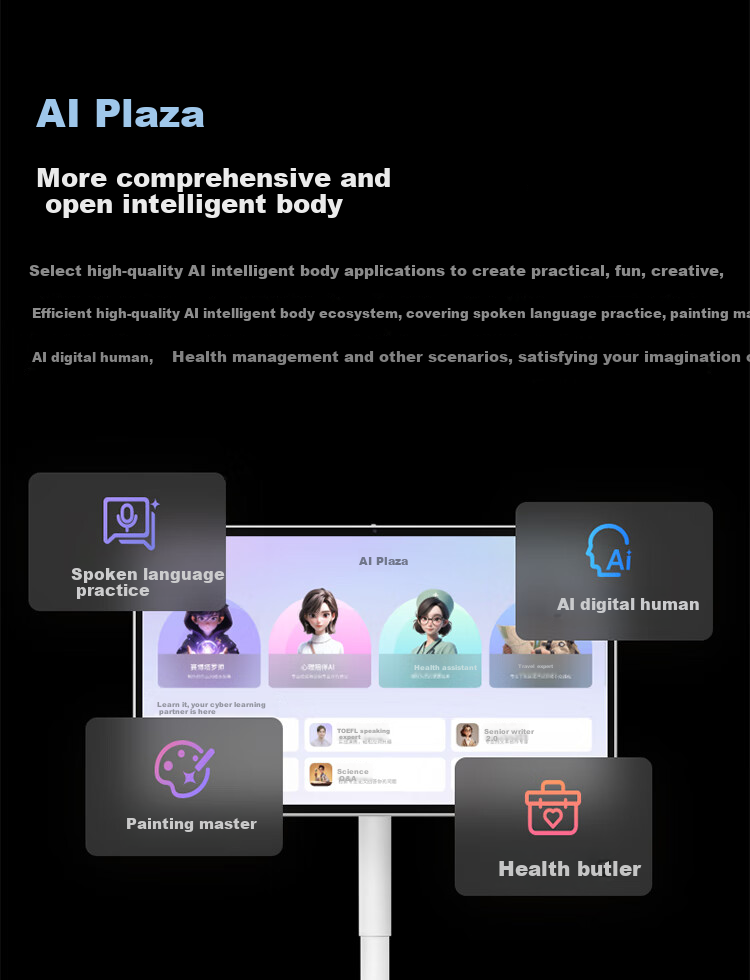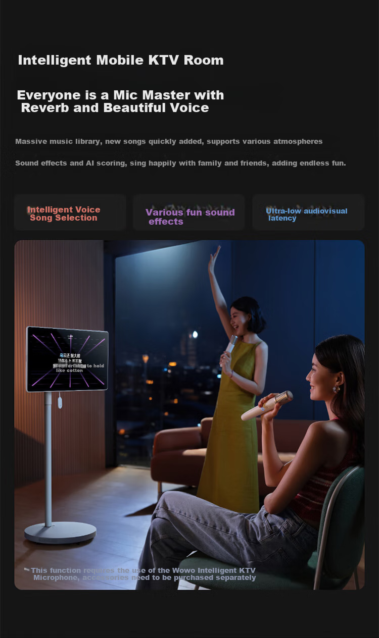 **Entertainment:** Kids' content, karaoke, music library, AI-enhanced singing experience