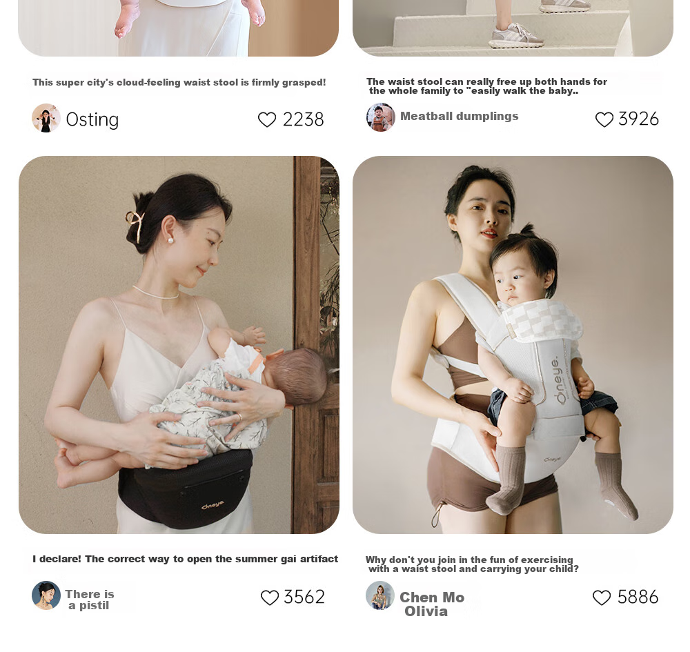- Suitable for newborns (0-3 months), neck lifting period (3-6 months), sitting period (6 months-1 year), and walking period (1 year+)