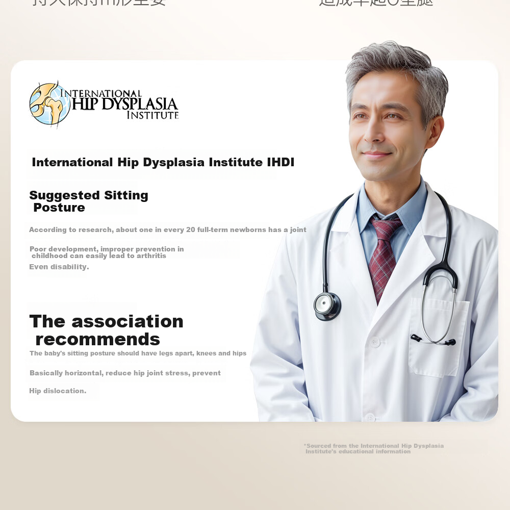 - Recommended by the International Hip Dysplasia Institute (IHDI) for proper sitting posture