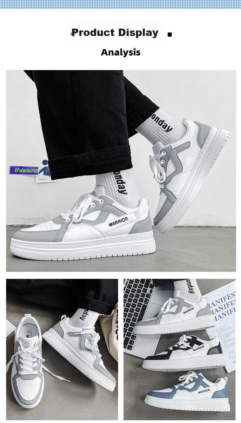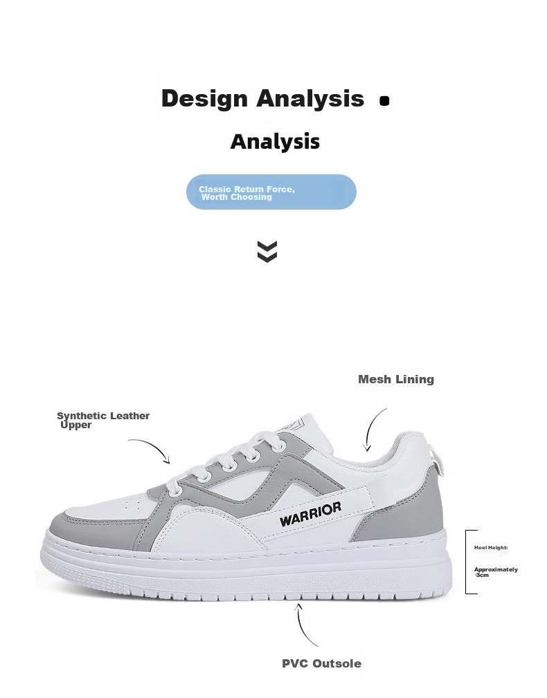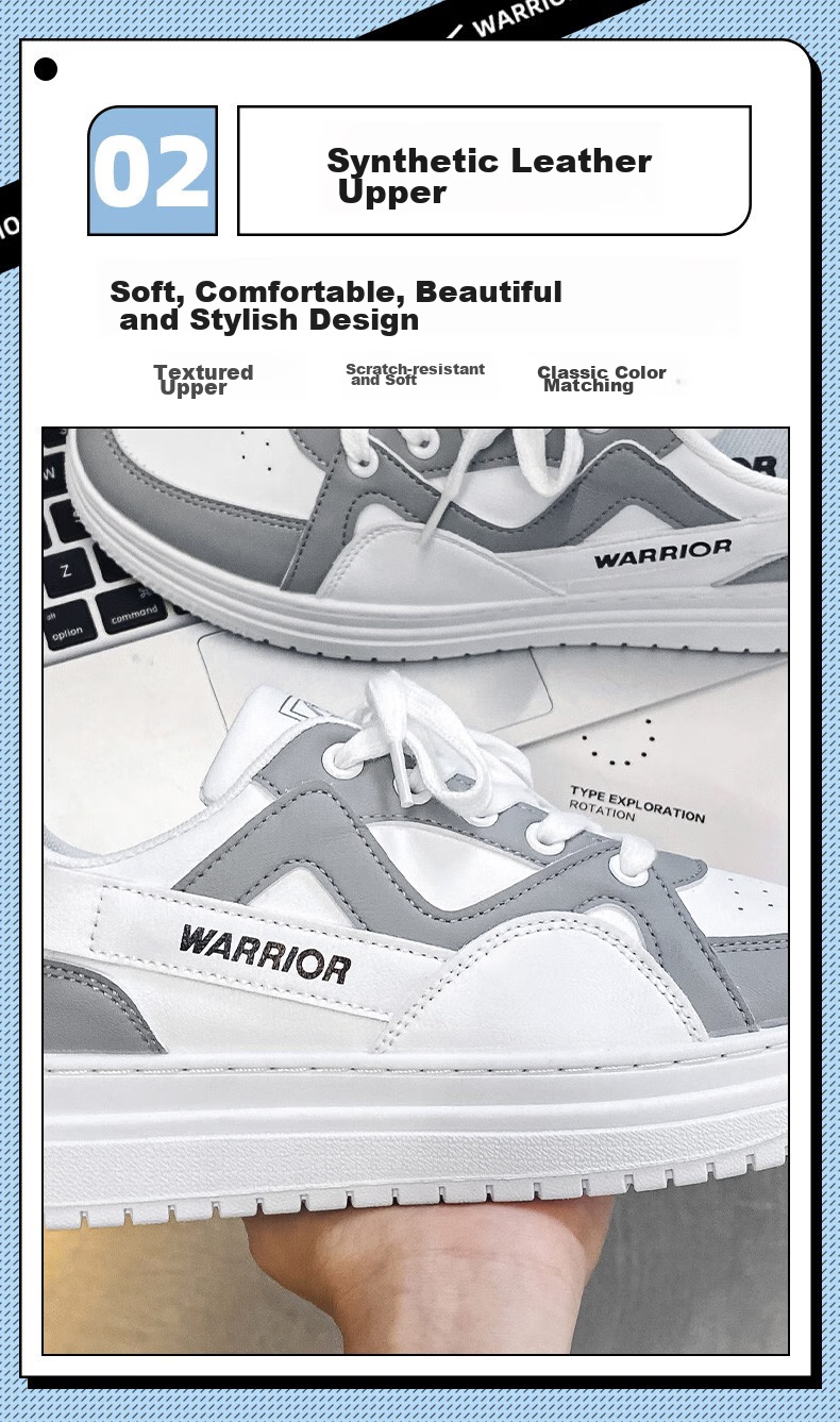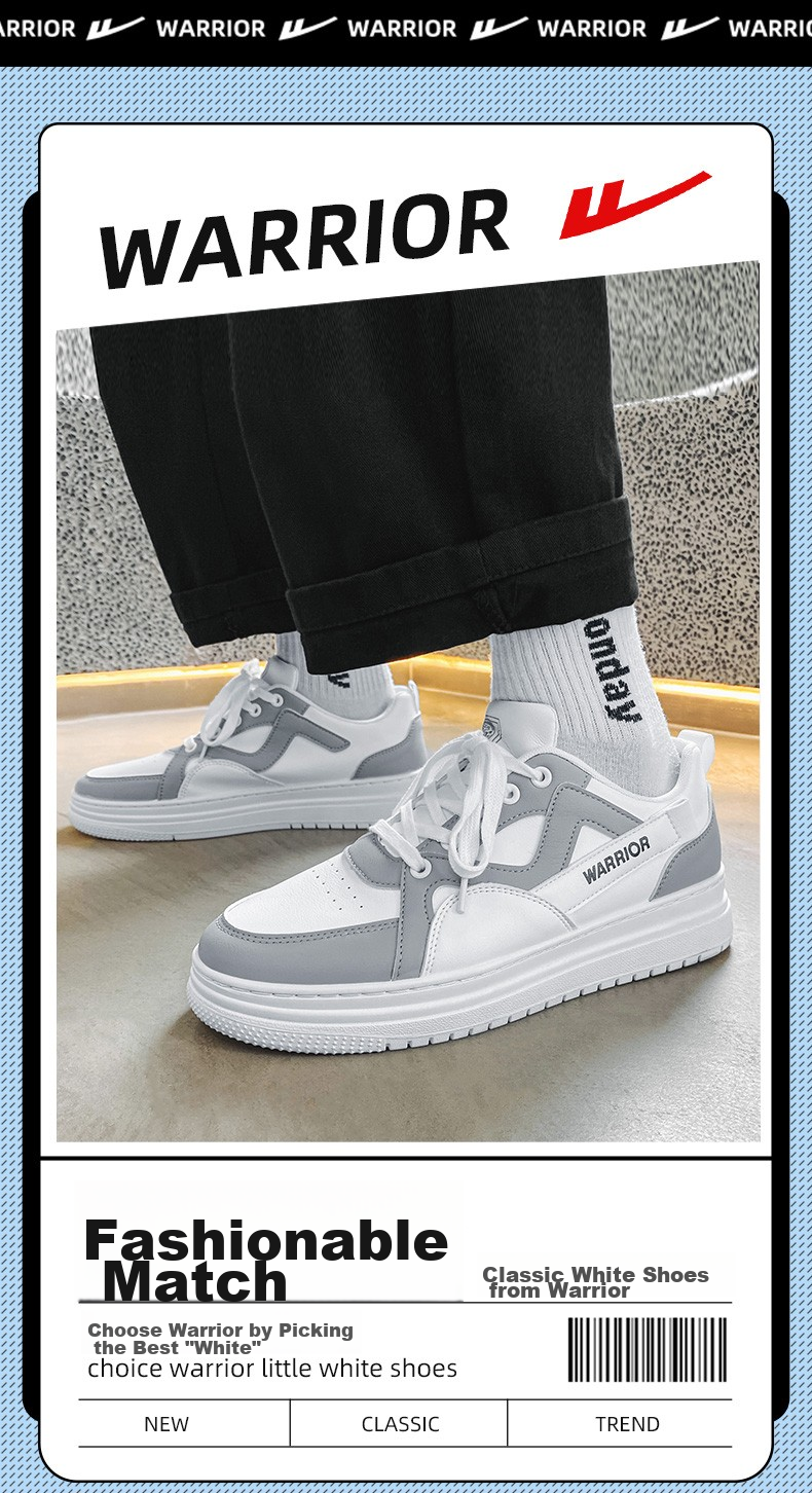 **Product Showcase:** Warrior Classic White Shoes, a perfect blend of new, classic, and trendy design elements.