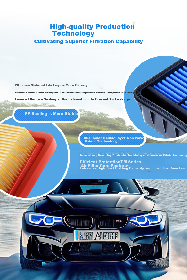 **Features:** Comprehensive dust particle filtration, high-quality filter paper, impregnated resin filter paper, uniform pleat spacing, high filtration precision, protection against tire debris, pollen, dust, and other particles