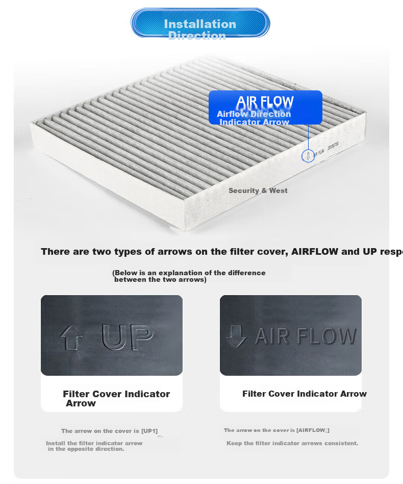 Air flow direction indicated by arrows on the filter cover