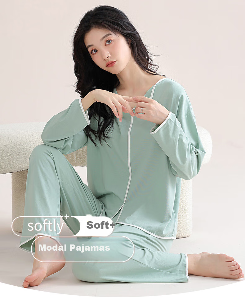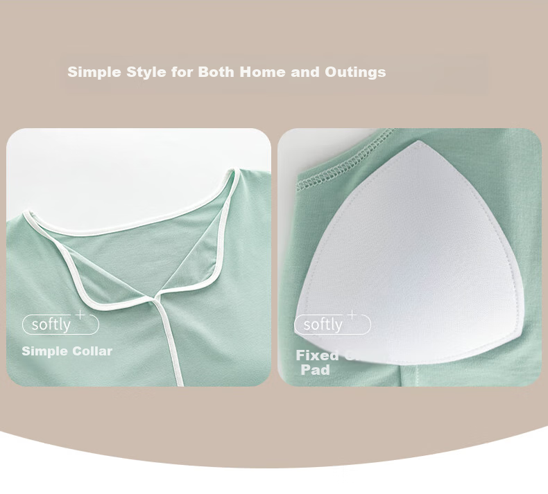 **Fabric Characteristics:** Utilizes a technology that makes the fabric softer, improving the tightness of the skin before sleep. Made of modal for a naked feel. Suitable for both home and outdoor wear, featuring a simple design with a soft and minimalistic neckline, fixed chest pad.
