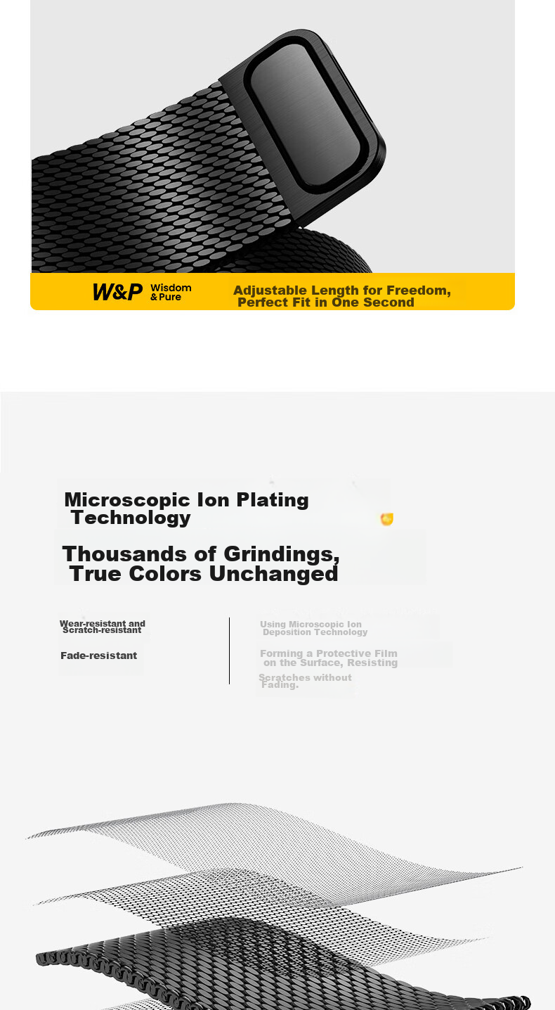 **Technology:** Utilizes micro-ion plating technology for scratch resistance and color retention.