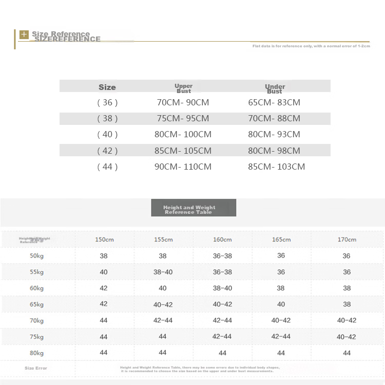 *Size (40):* Upper Bust 80-100cm, Lower Bust 80-93cm