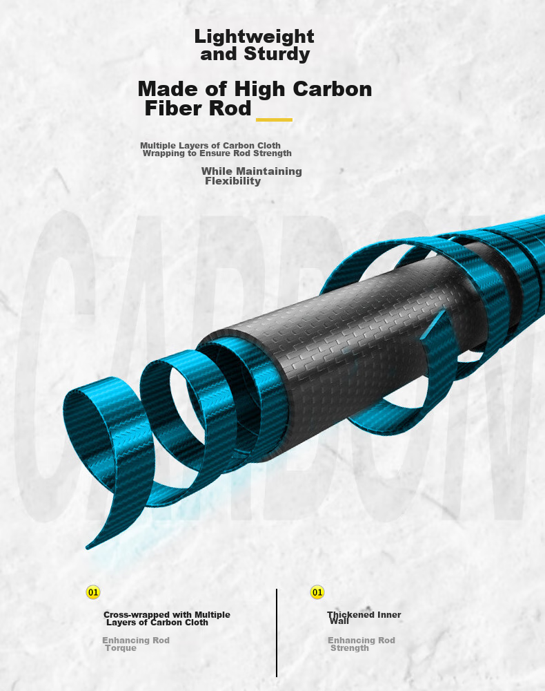 - Lightweight and strong high carbon fiber rod