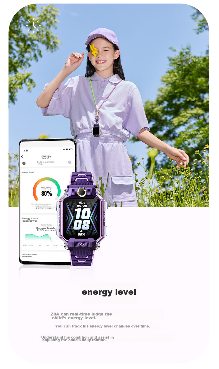XTC Children's Smartwatch Z8A in Iridescent Purple, Waterproof GPS Positioning Smartwatch, Student Children's 4G Video Camera Dual-Lens Watch for Boys And Girls