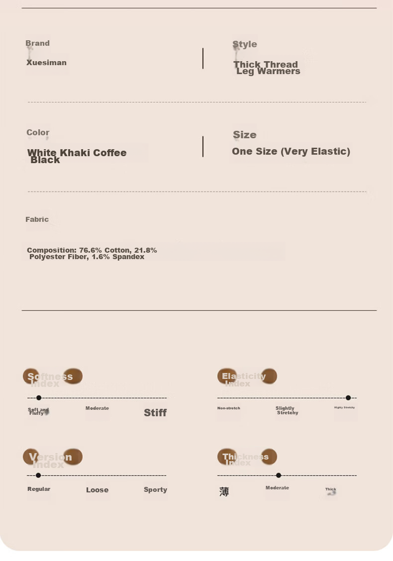 - Composition: 76.6% cotton, 21.8% polyester fiber, 1.6% spandex