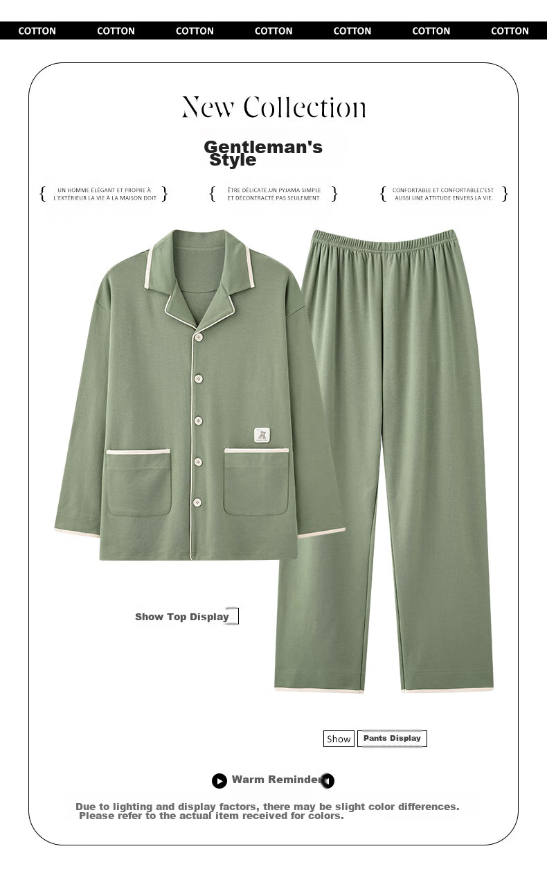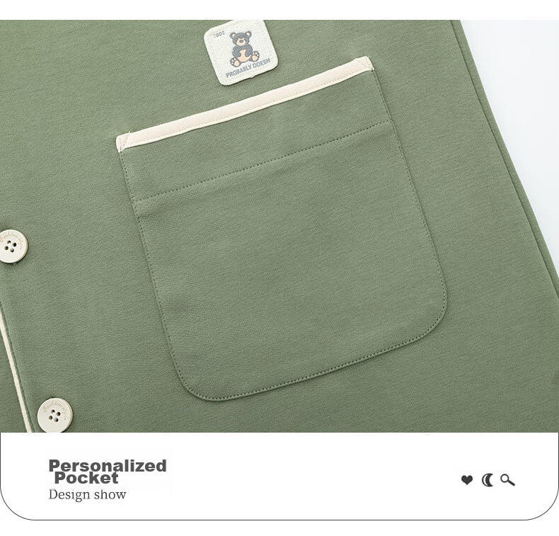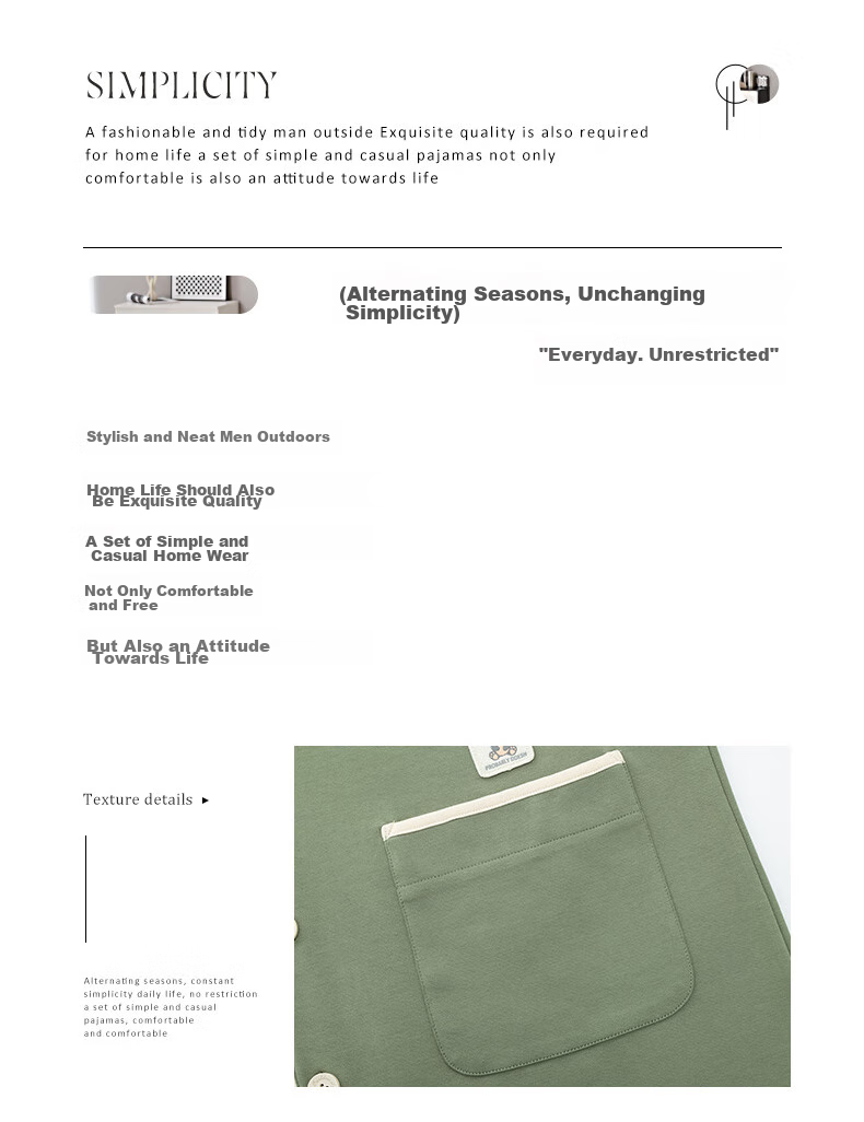 - Comfortable collar, loose cuffs, unique pockets, round buttons, neat stitching, and elastic waistband