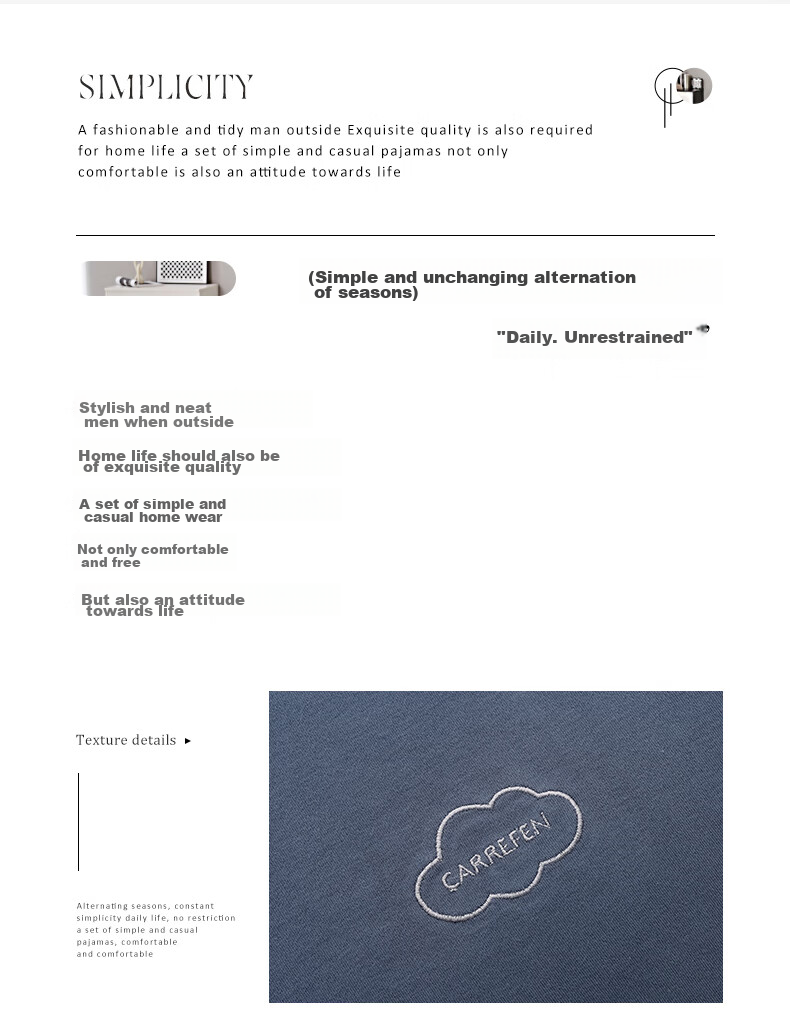 This men's casual home wear collection from XUEXIMAN offers a blend of simplicity, comfort, and style, perfect for those who appreciate quality and a relaxed attitude towards life.