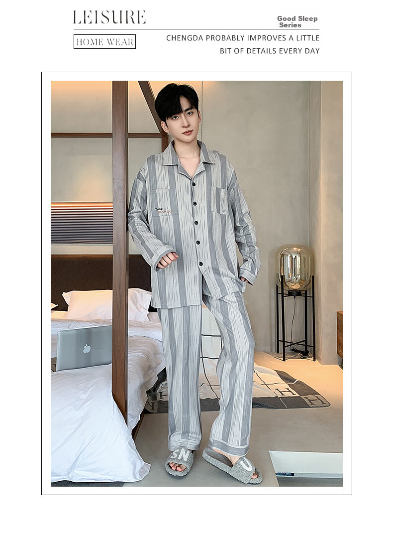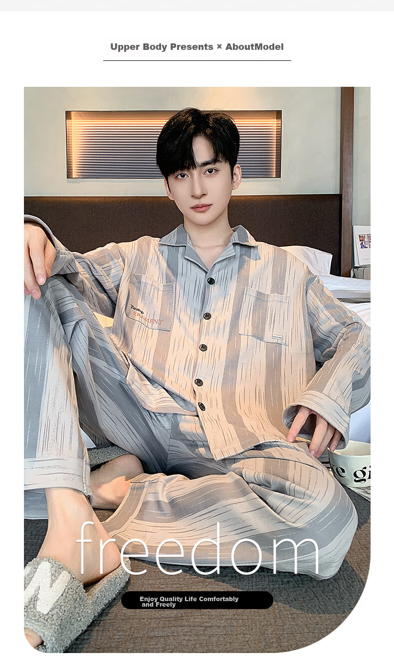 Enjoy a leisurely and comfortable lifestyle with XUEXIMAN Men's Casual Home Pajamas. Made from high-quality cotton fabric, these pajamas offer a perfect blend of comfort and style. The thoughtful design details such as comfortable collar, soft cuffs, and functional pockets ensure a cozy and relaxed wearing experience. Ideal for lounging at home or stepping out, these pajamas are a must-have for those who appreciate simplicity and quality in their everyday wear.