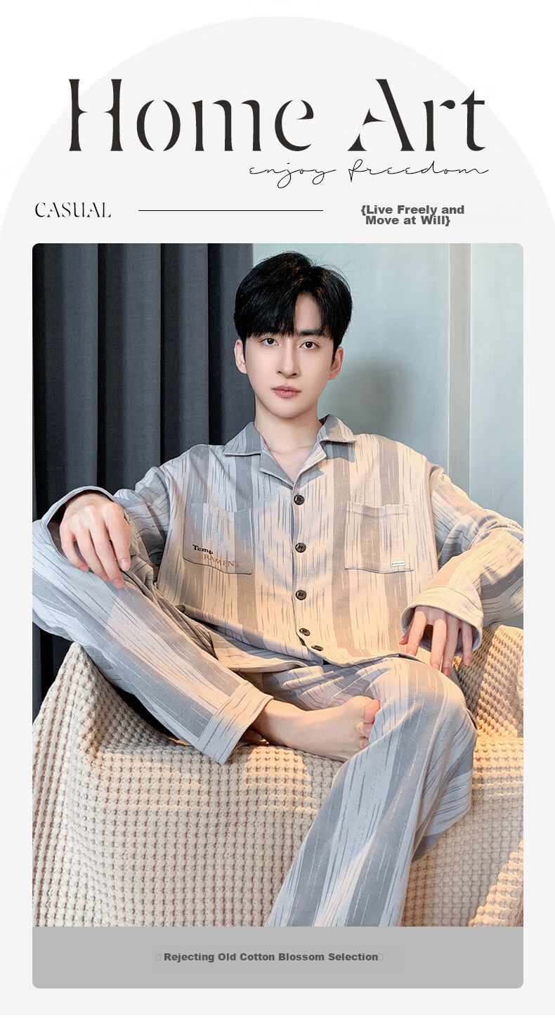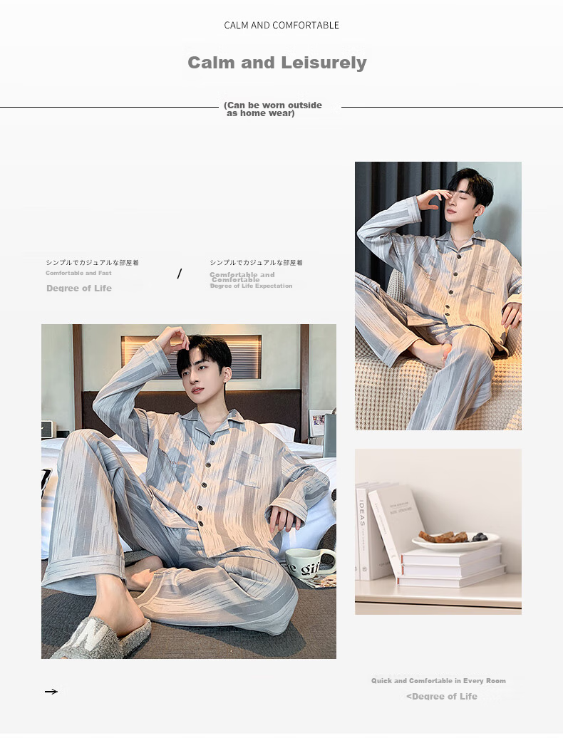 Enjoy a leisurely and comfortable lifestyle with XUEXIMAN Men's Casual Home Pajamas. Made from high-quality cotton fabric, these pajamas offer a perfect blend of comfort and style. The thoughtful design details such as comfortable collar, soft cuffs, and functional pockets ensure a cozy and relaxed wearing experience. Ideal for lounging at home or stepping out, these pajamas are a must-have for those who appreciate simplicity and quality in their everyday wear.