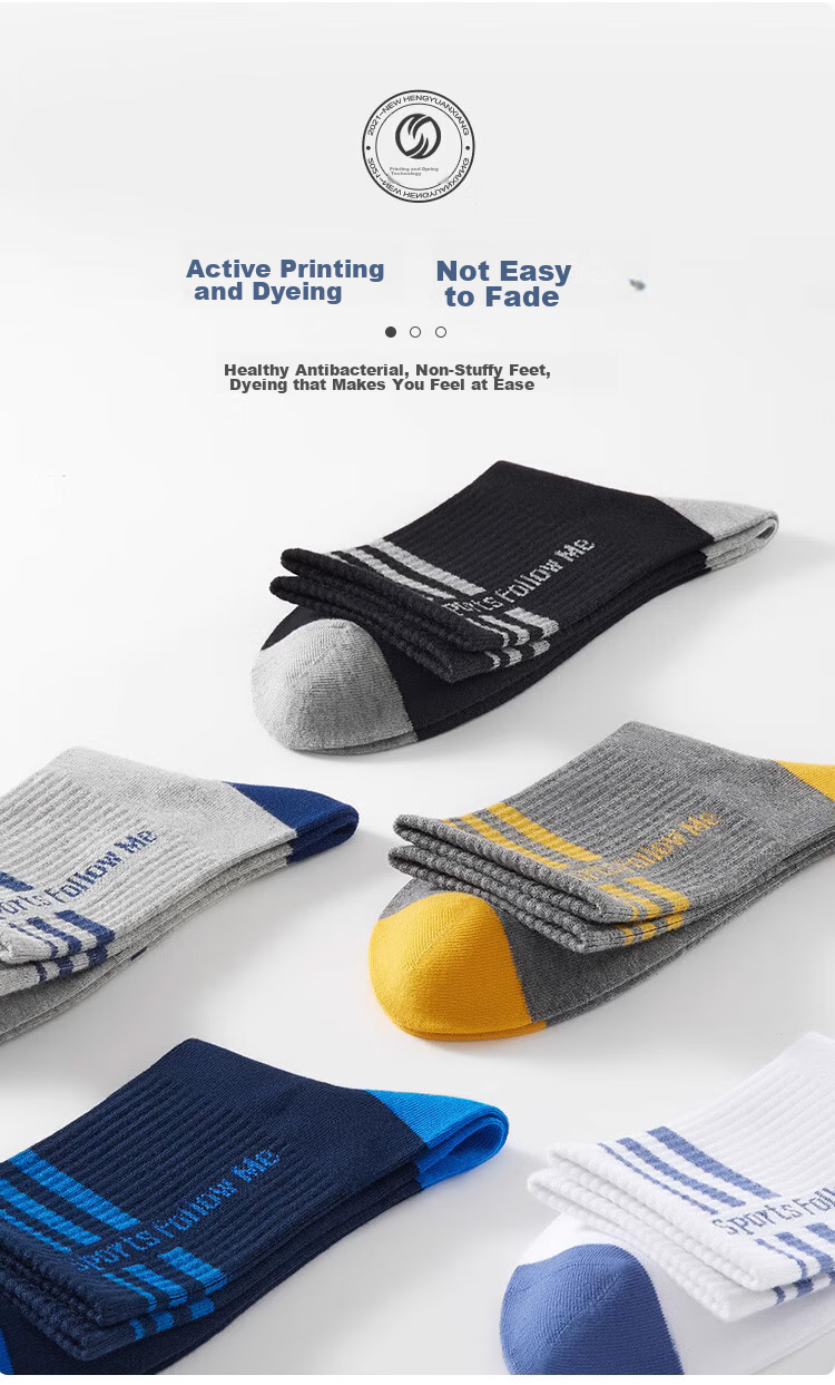 These XUEXIMAN men's jacquard sports socks are designed to provide a comfortable, durable, and antibacterial wearing experience. Ideal for those seeking quality, comfort, and style in their everyday socks.