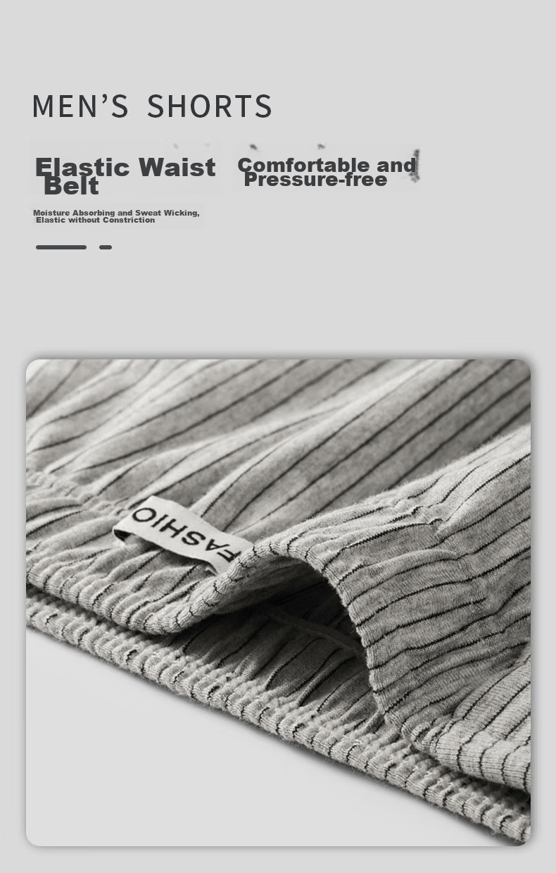 **Description:** Striped pure cotton shorts, suitable for both staying at home and going out, providing comfort for 24 hours of leisurely living.