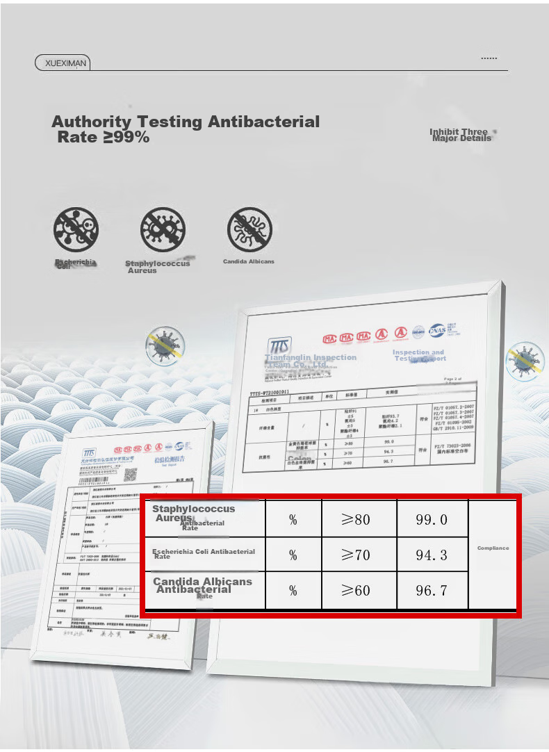 Antibacterial properties with a rate of ≥99%