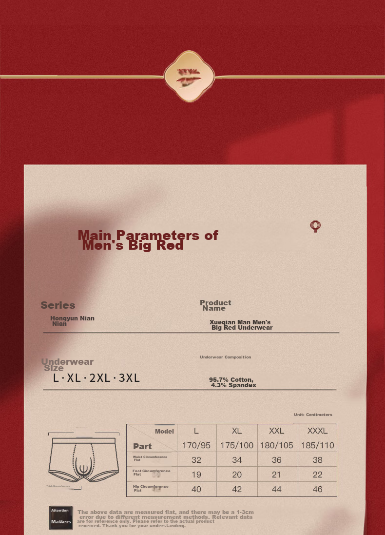 **Measurement Chart:** Waist circumference, flat waistband, flat leg circumference, hip circumference