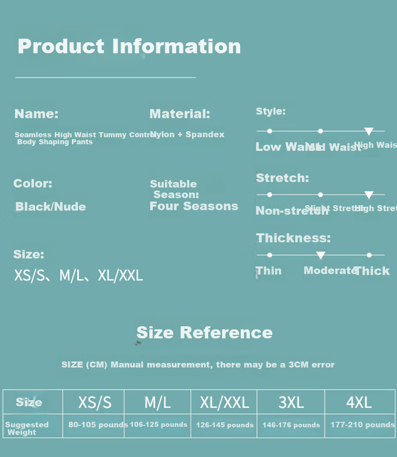 XUEXIMAN BODY CURVE Shaping Leggings are designed to shape your body, cinch your waist, lift your butt, and create a beautiful silhouette. Made of high-quality nylon and spandex blend, these leggings are firm yet comfortable, providing a seamless and breathable experience. The high-waist design with double compression helps tighten the waist and abdomen, while the 3D butt lifting feature enhances and supports your curves. Available in black and nude colors, these leggings come in various sizes to suit different body types. The wide waistband with memory steel bones ensures a comfortable fit without leaving marks or rolling. Perfect for all seasons, these leggings are ideal for achieving a smooth and sculpted look while maintaining comfort and flexibility.