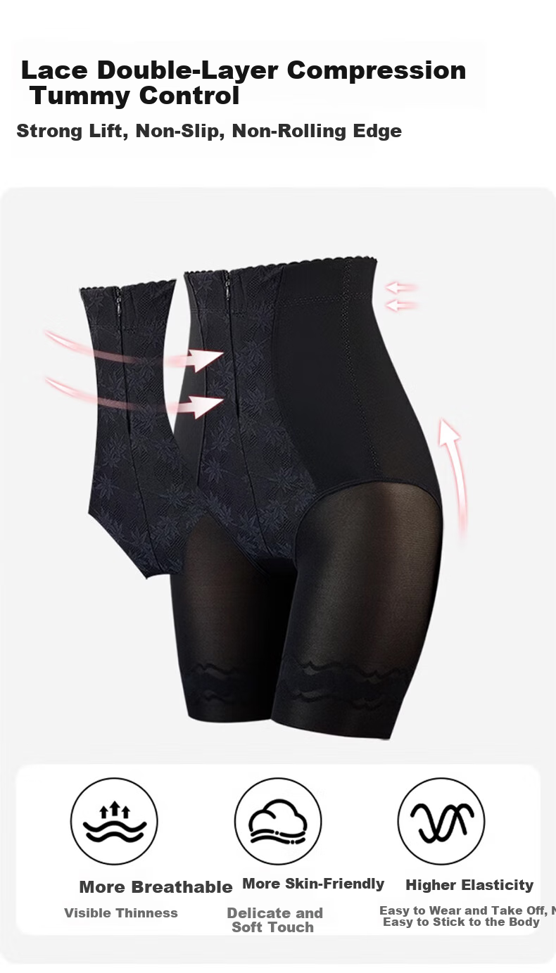 - Lace double-layered compression for strong and non-slip tummy control
