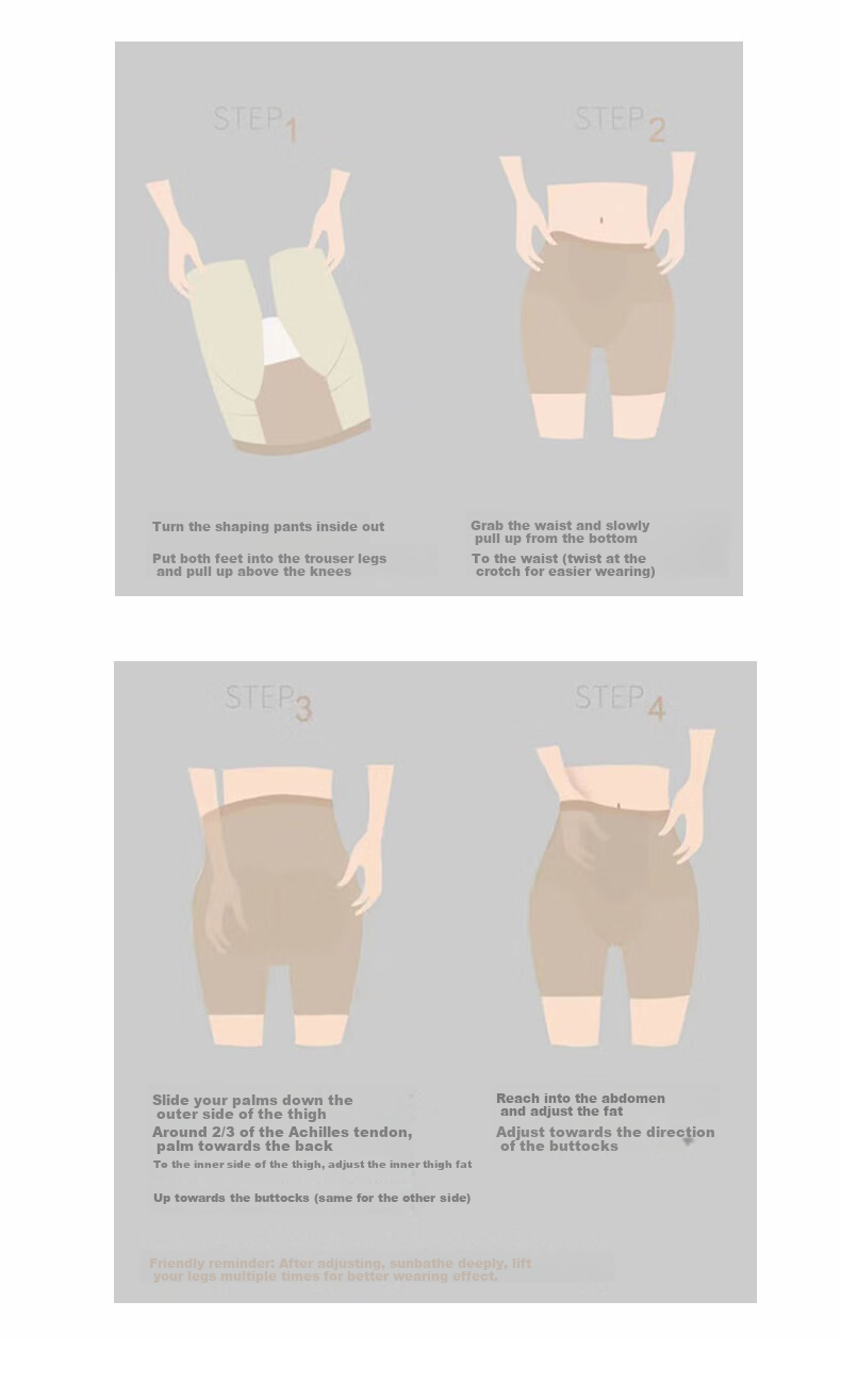 - Step 1: Turn the shapewear inside out, pull it up slowly from the bottom to the waist, and wear it up to the knees
