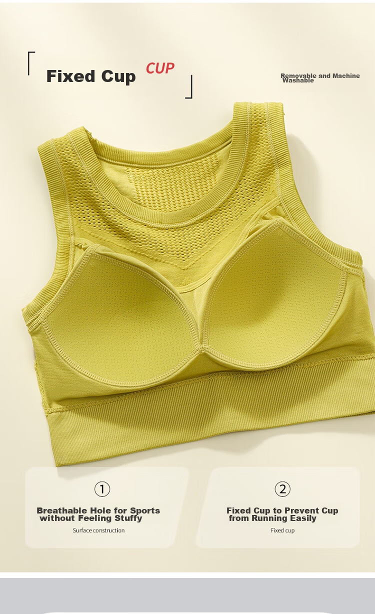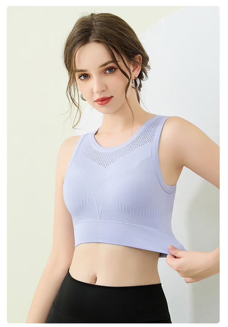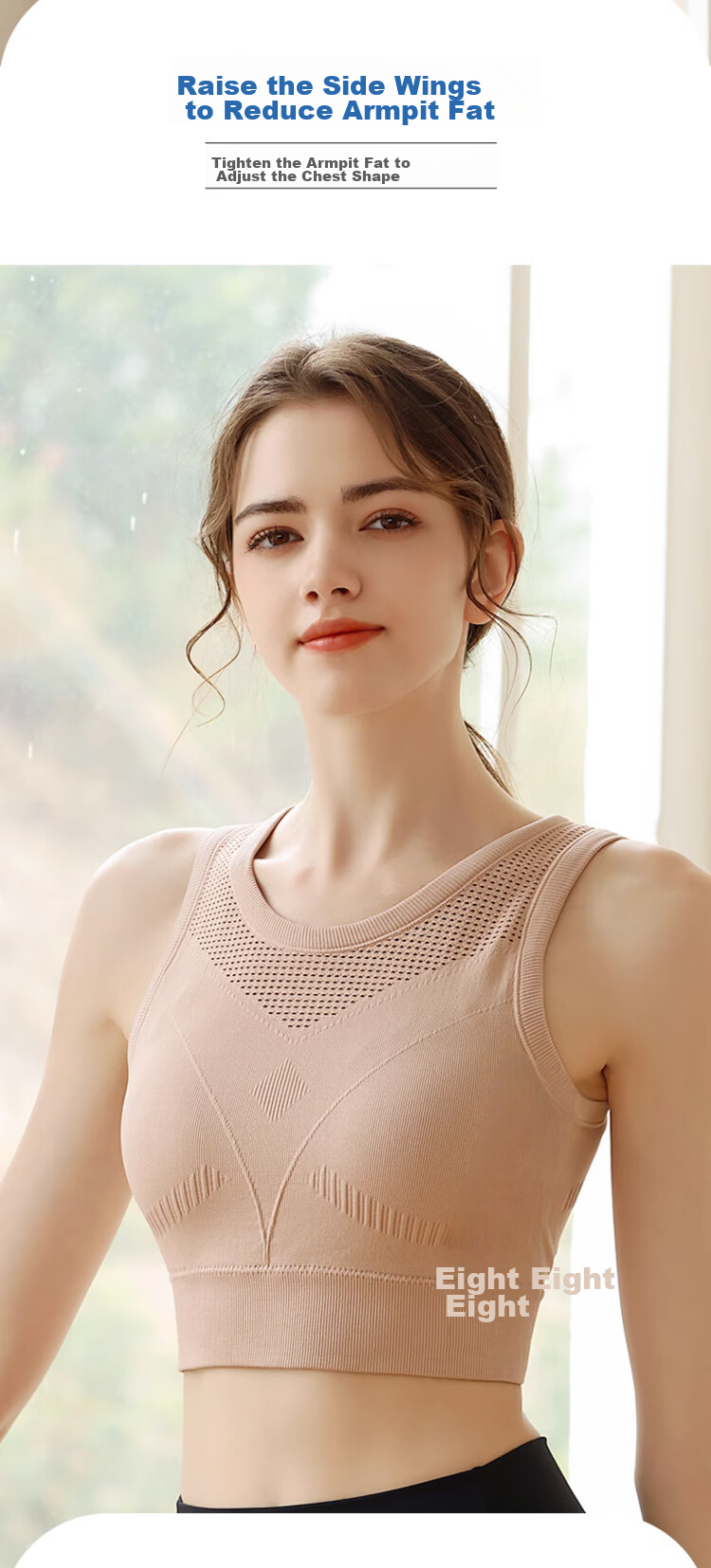 **Design:** Wide underbust band for stability and a slimming effect. Comfortable uplift with side wings to control underarm fat and adjust breast shape. Breathable mesh fabric for sweat absorption and back pressure relief. Quick-drying fabric for sweat-wicking and breathability, with pressure relief and anti-slip support.
