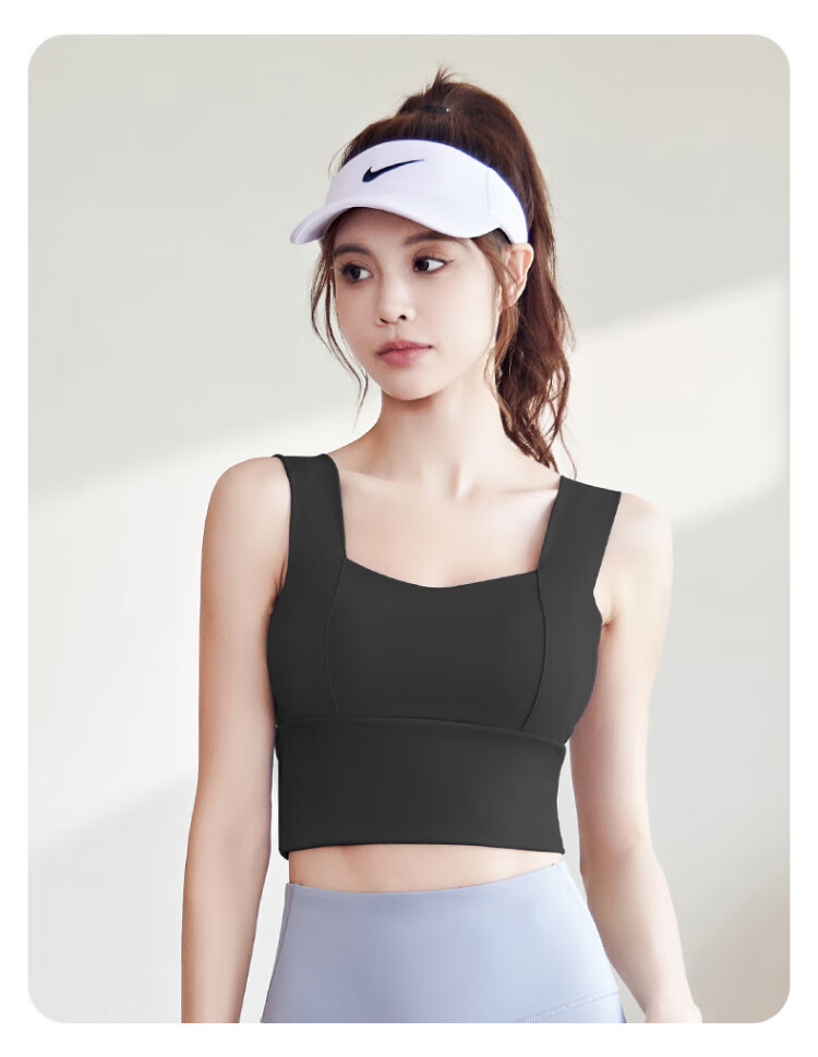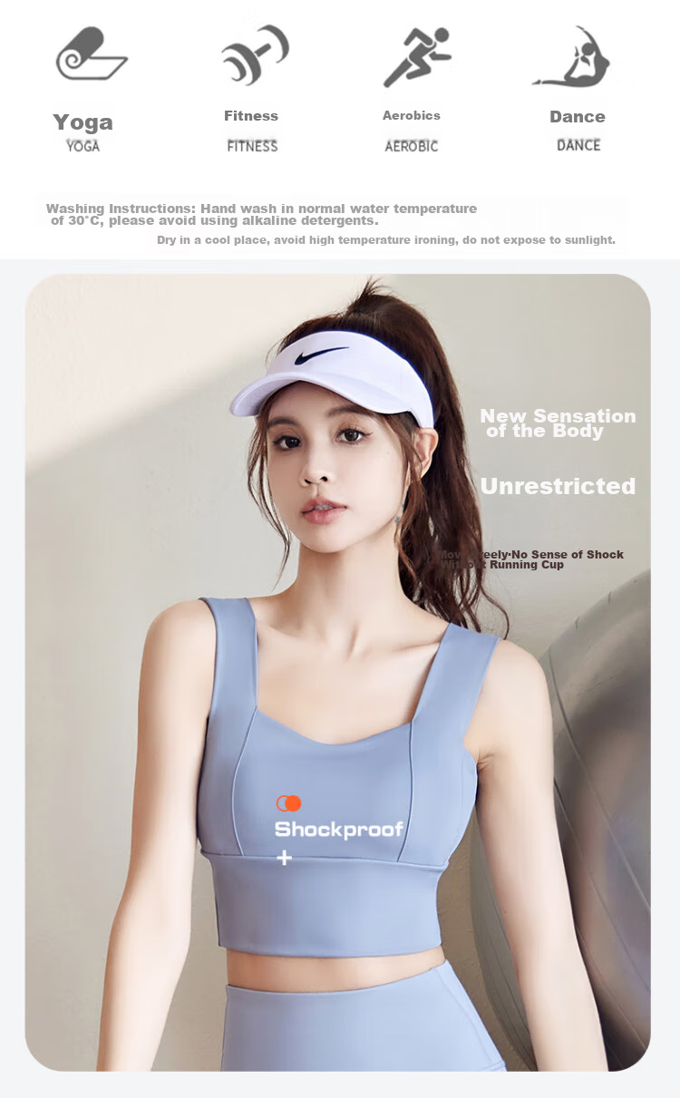 **Fabric:** Silky touch, comfortable and shockproof sports bra, fixed chest pad bra, non-slip fixed chest pad, removable and machine washable chest pad bra, classic removable chest pad, convenient for travel