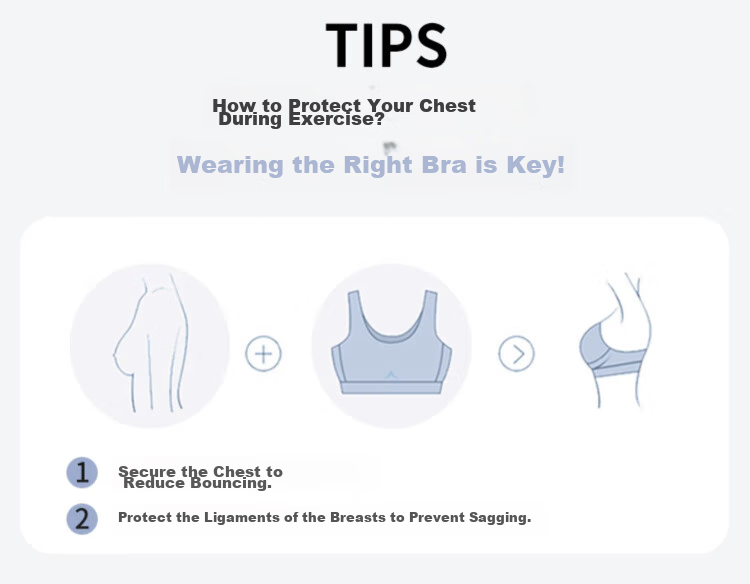 **Tips:** Properly support and protect the chest during sports by wearing the correct bra to minimize bouncing, protect breast ligaments, and prevent sagging