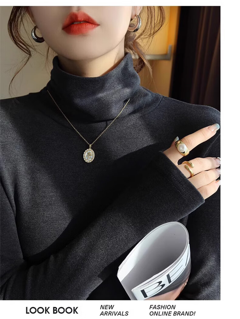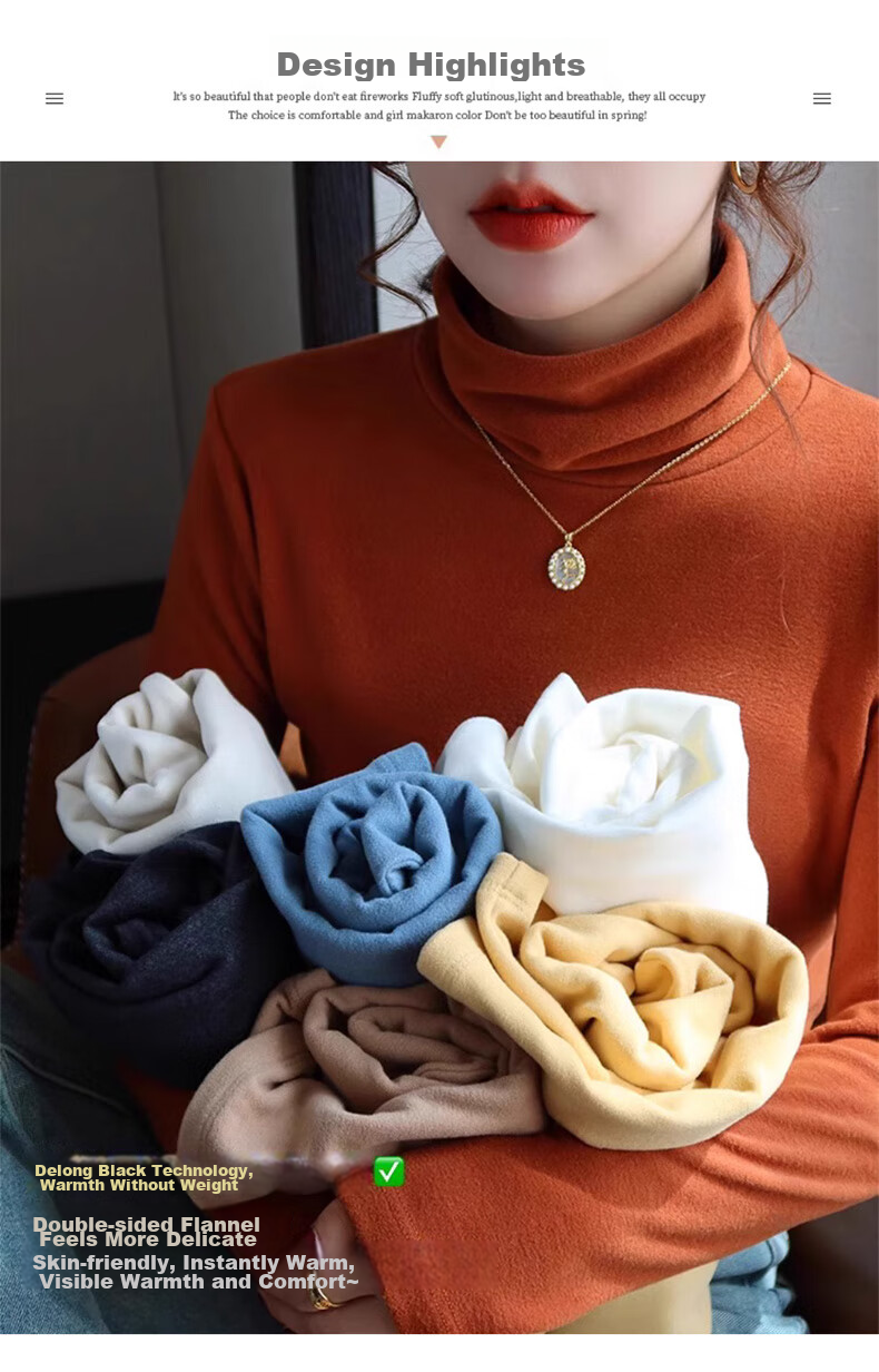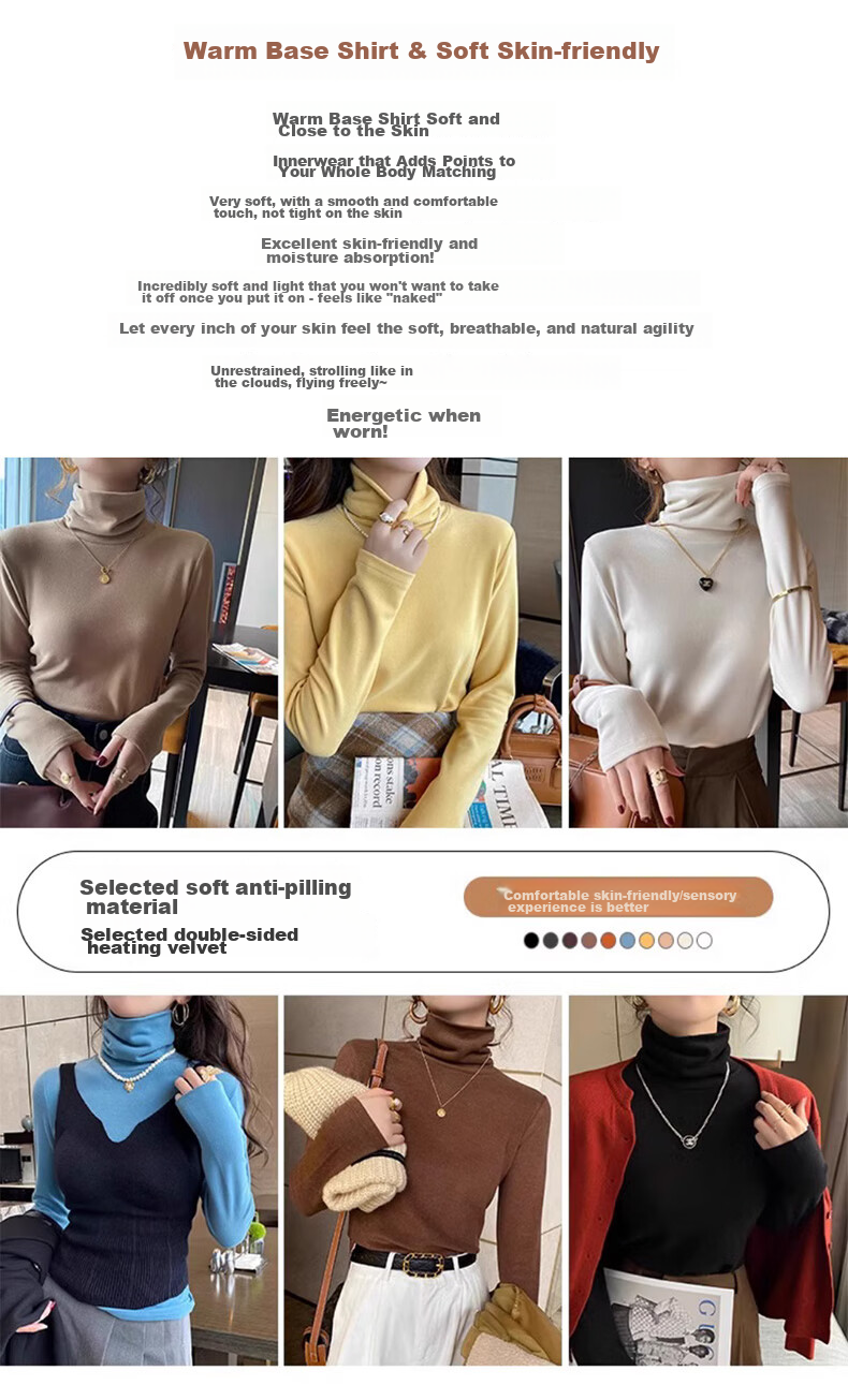 The shirt is made of selected double-sided heating velvet, offering a soft, skin-friendly, anti-pilling, and high elasticity fabric.