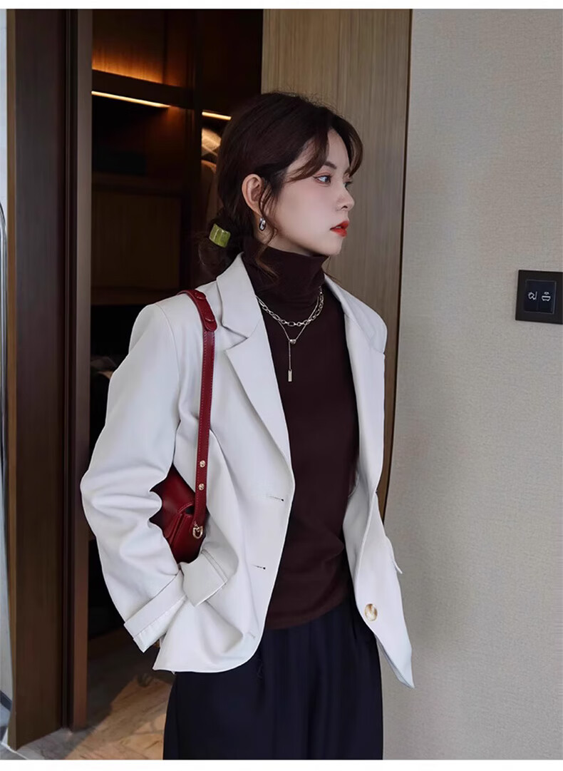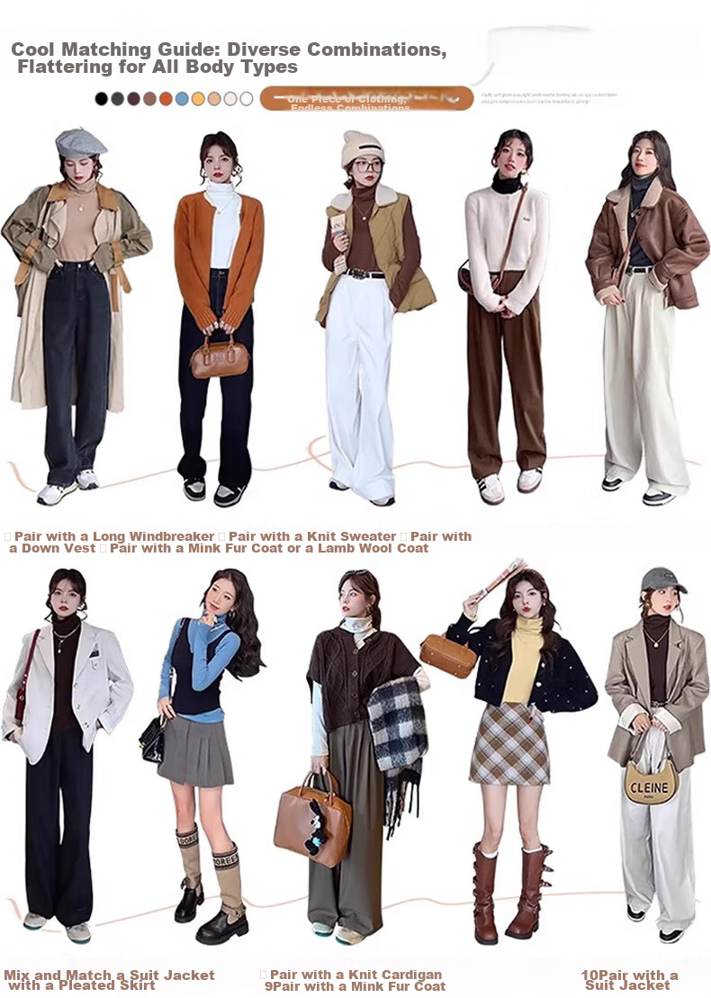 The shirt can be paired with various outerwear such as long coats, knit sweaters, down vests, fur coats, and blazers for a trendy and chic look.