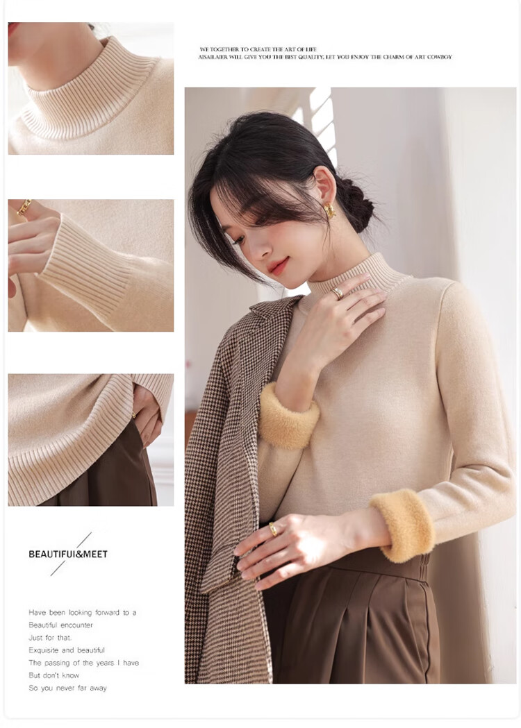 Design: Front and back panels, half high collar for comfort and warmth, regular cuffs for a simple and elegant look