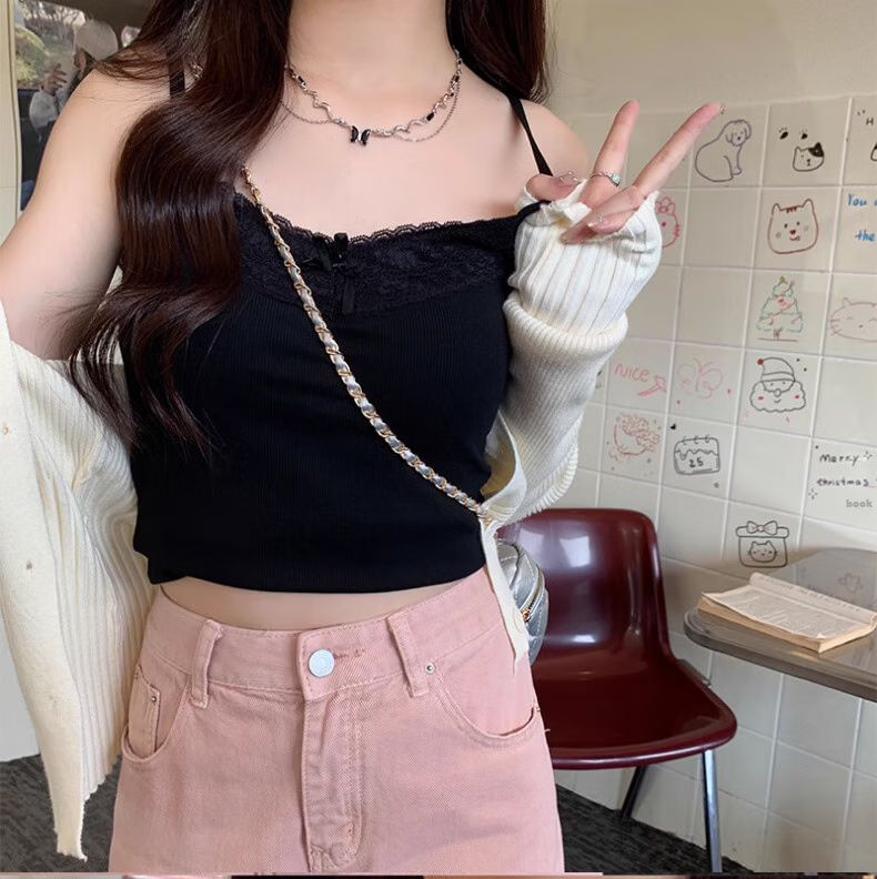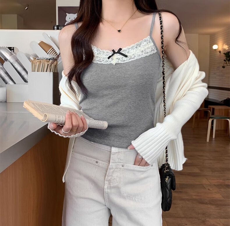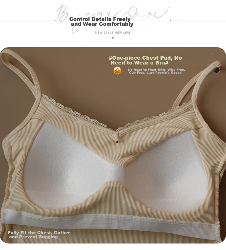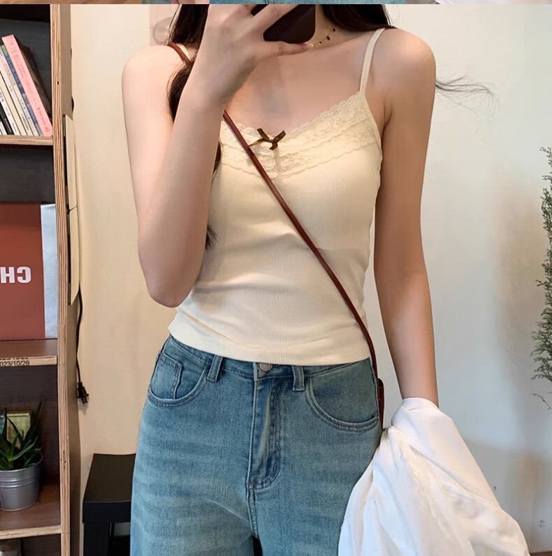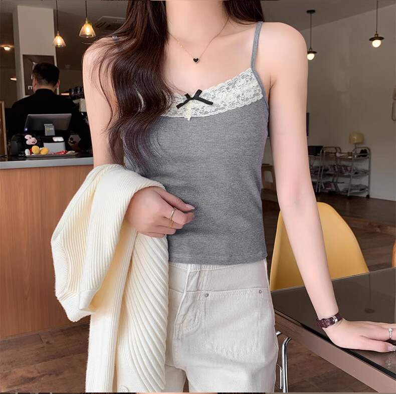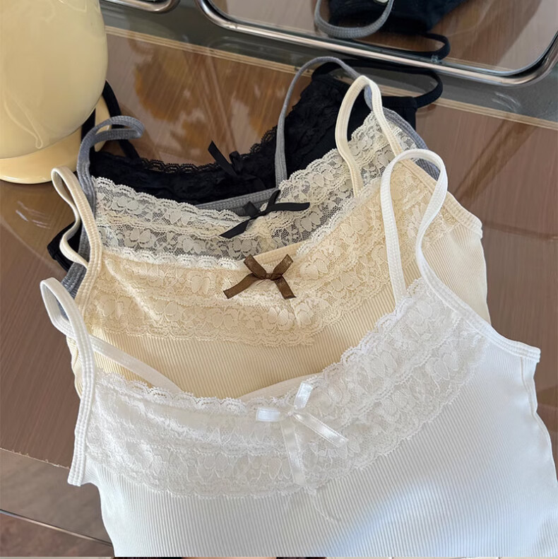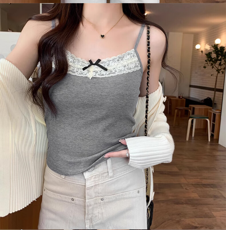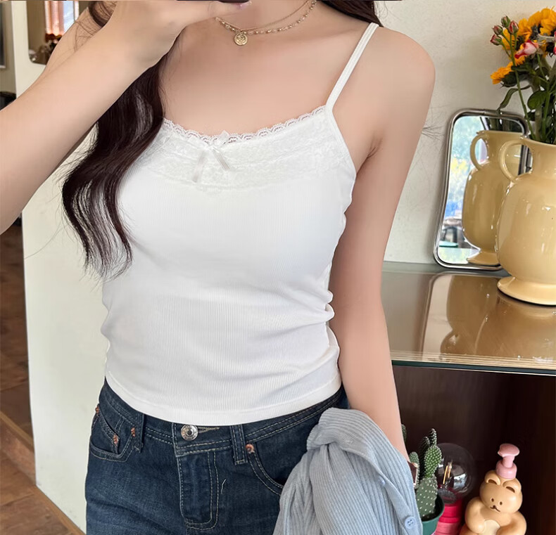 **Design:** Lace Trim V-Neck, Tank Top Shoulder Straps, Double-Needle Stitching at Hem