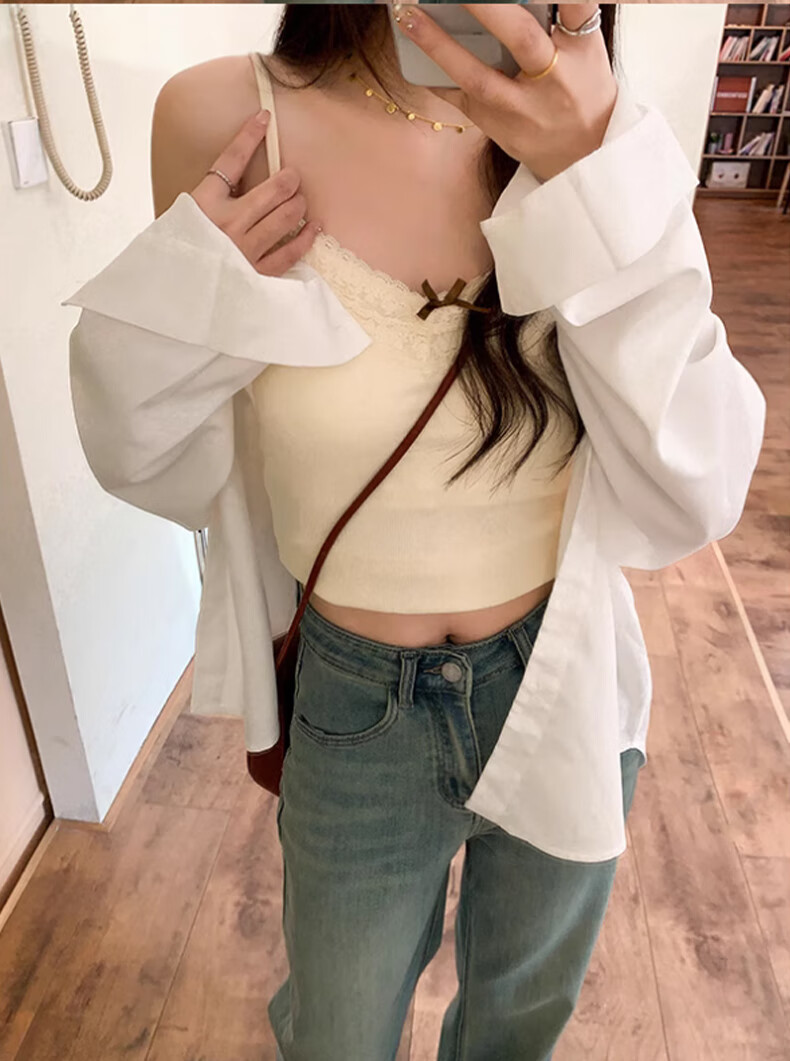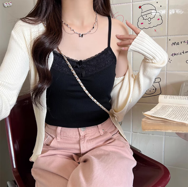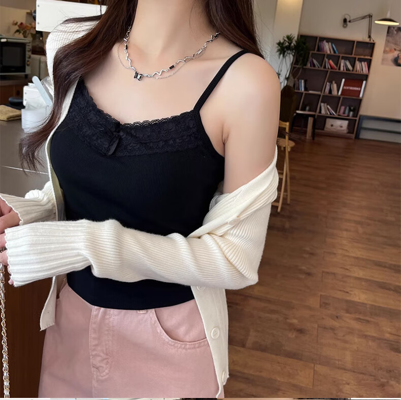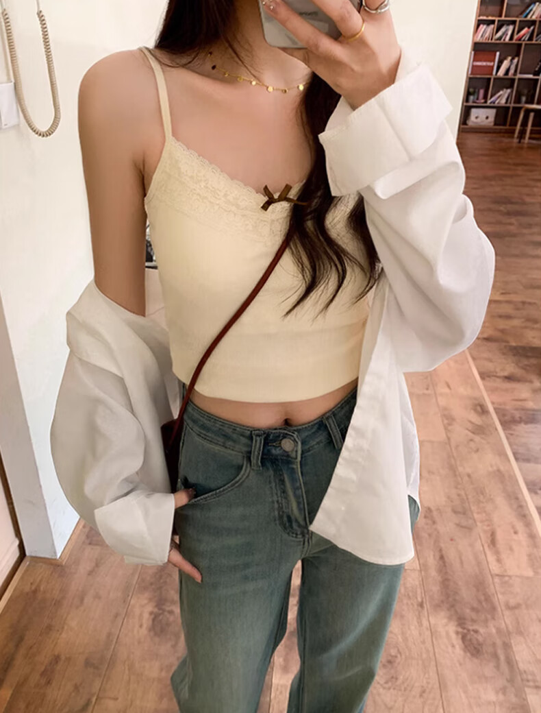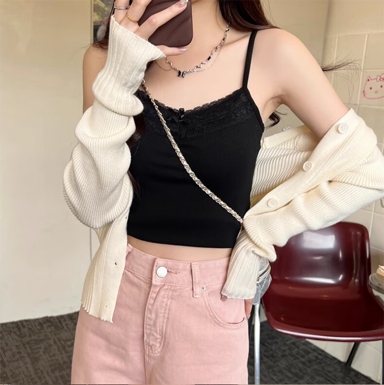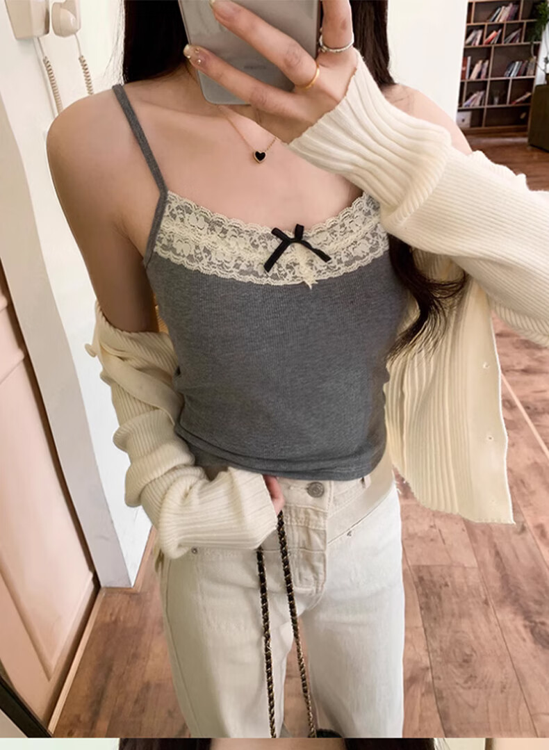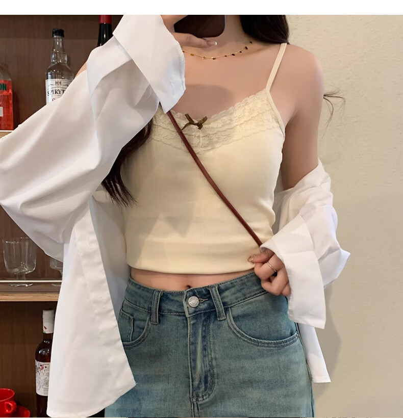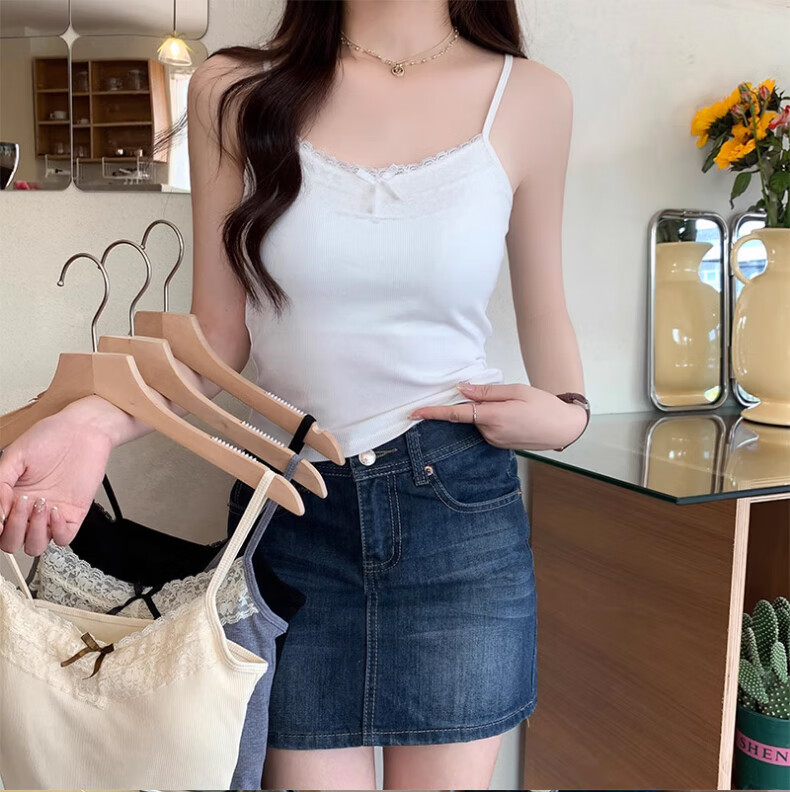 **Design:** Lace Trim V-Neck, Tank Top Shoulder Straps, Double-Needle Stitching at Hem