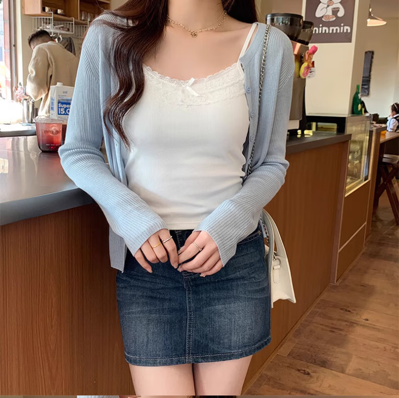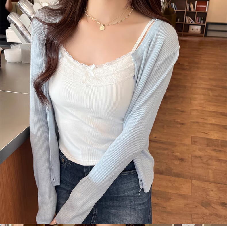 - Lace-trimmed V-neck to accentuate the collarbone and face shape