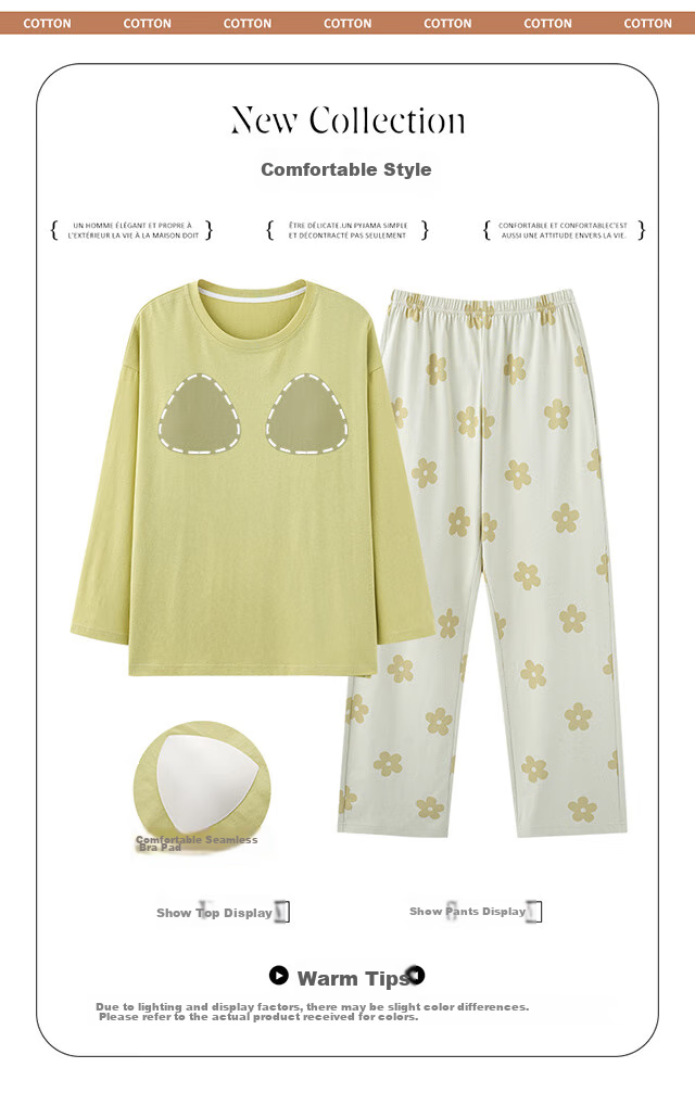 Name: Fresh Green Women's Sleepwear with Built-in Chest Pad