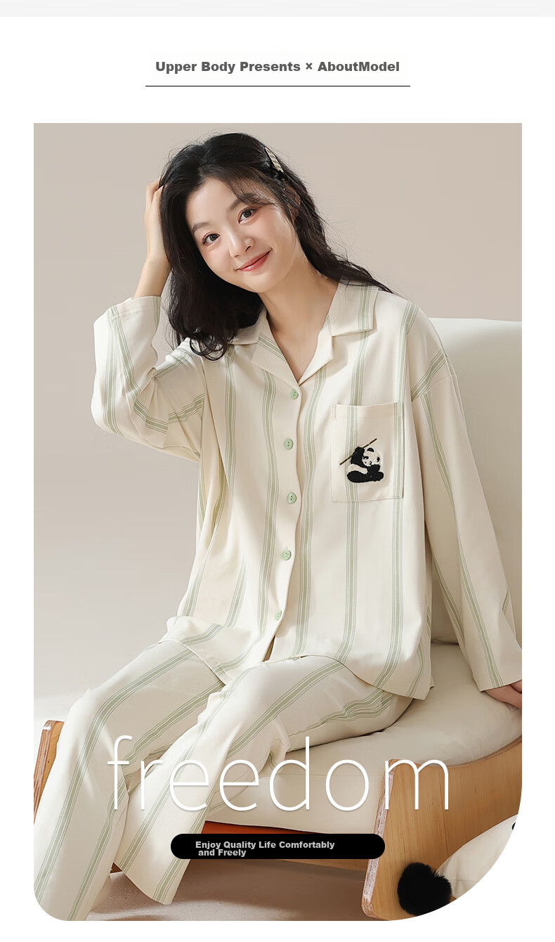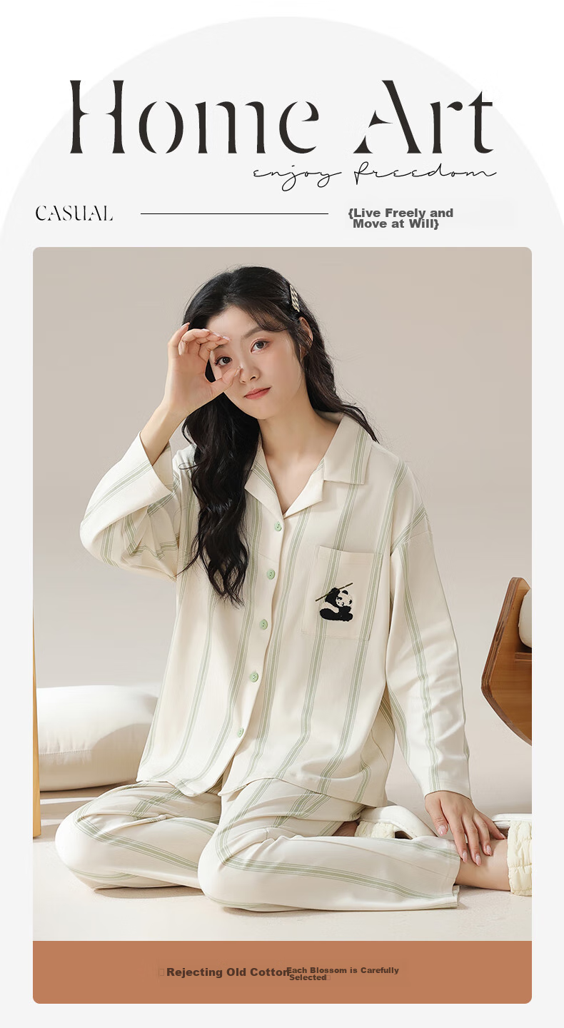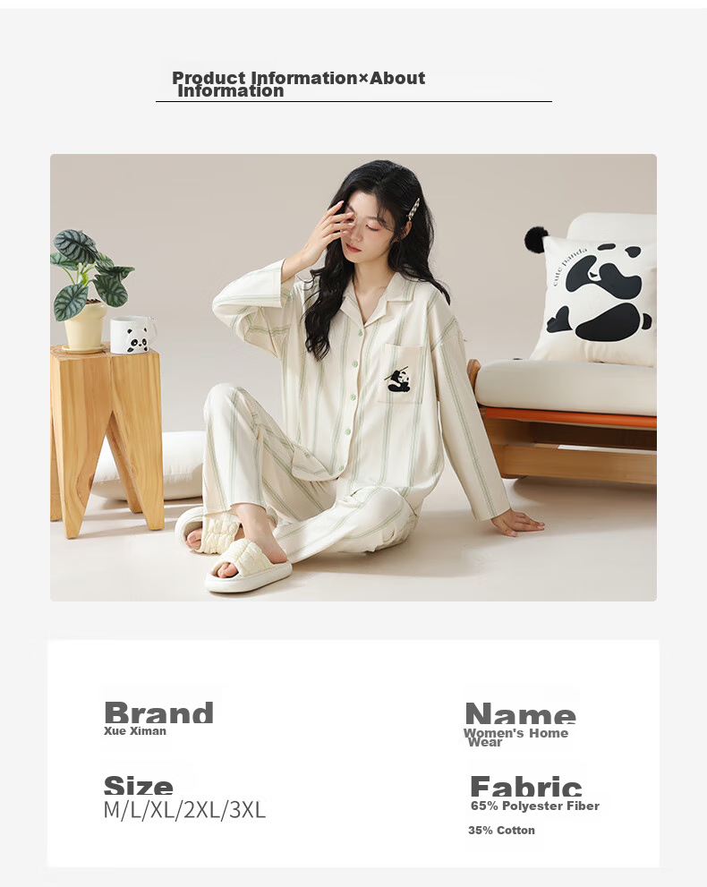 XUEXIMAN Women's Fresh Cotton Pajamas, All-Season Style, Suitable for Outdoor Wear, Ladies' Loungewear Set, Plus Size, Loose-Fitting Sleepwear