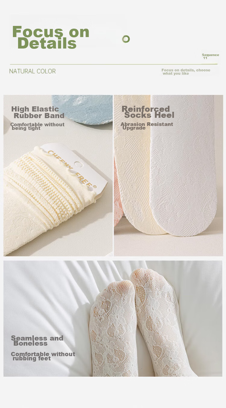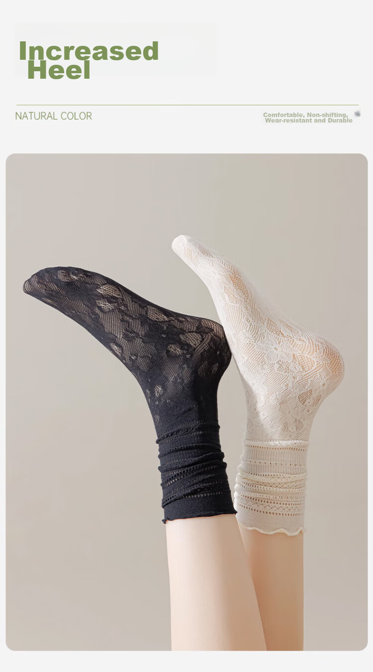 Features: Lace design, breathable and moisture-wicking, comfortable to wear, durable, seamless toe, reinforced heel, versatile wearing options