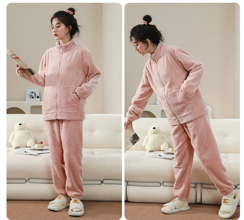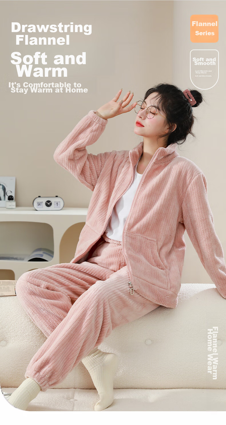 XUEXIMAN Women's Pajamas, Autumn And Winter Long-Sleeve Flannel Loungewear Set, Suitable for Outdoor Wear, Pink, Size M