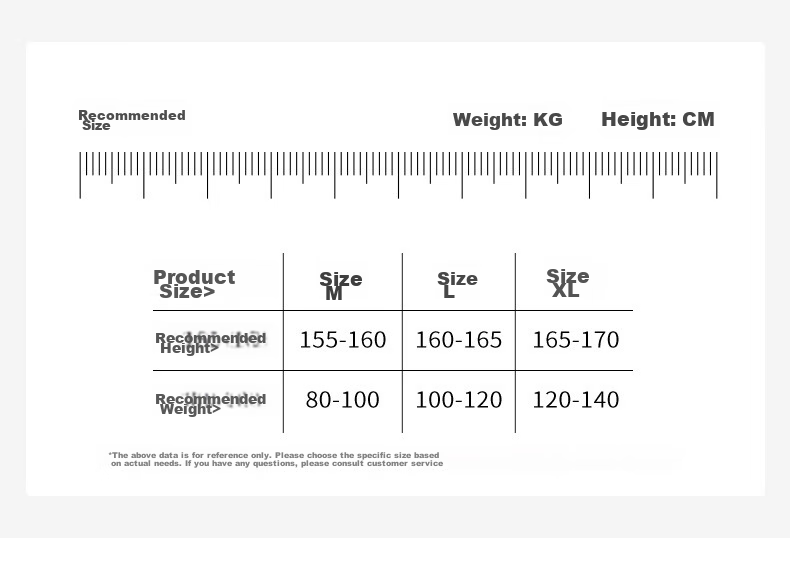 - XL: Height 165-170cm, Weight 120-140kg