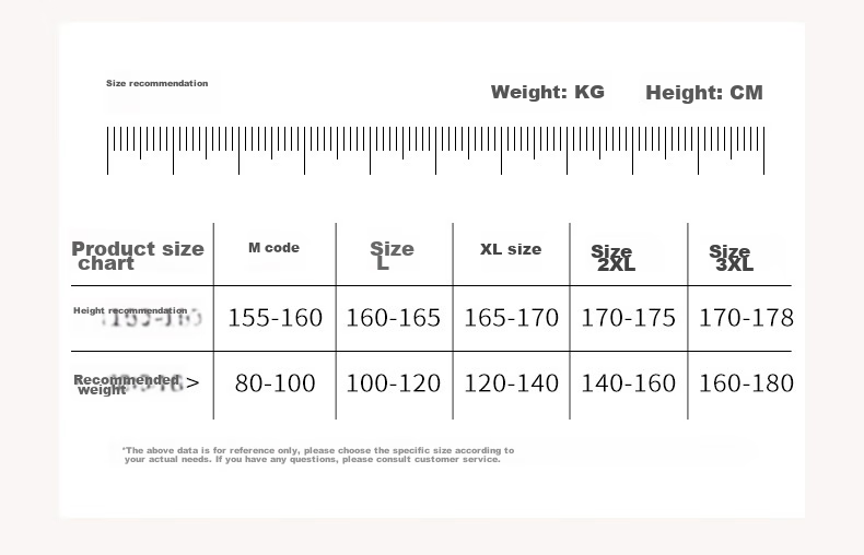 - Recommended Height: 155-160, 160-165, 165-170, 170-175, 170-178