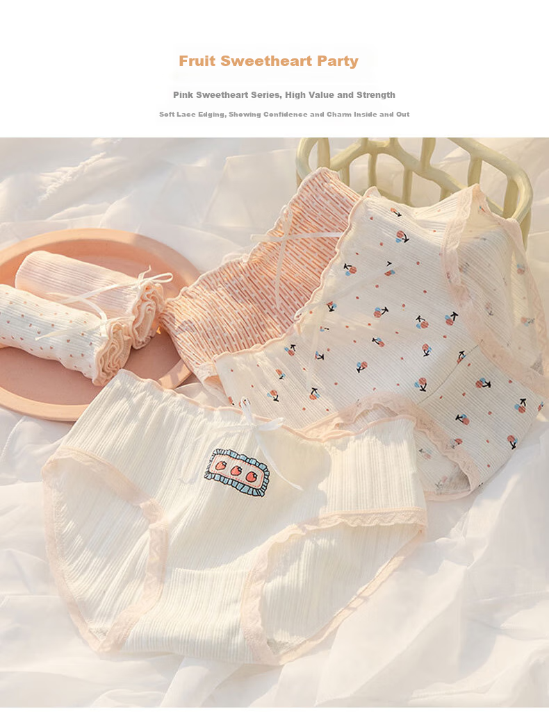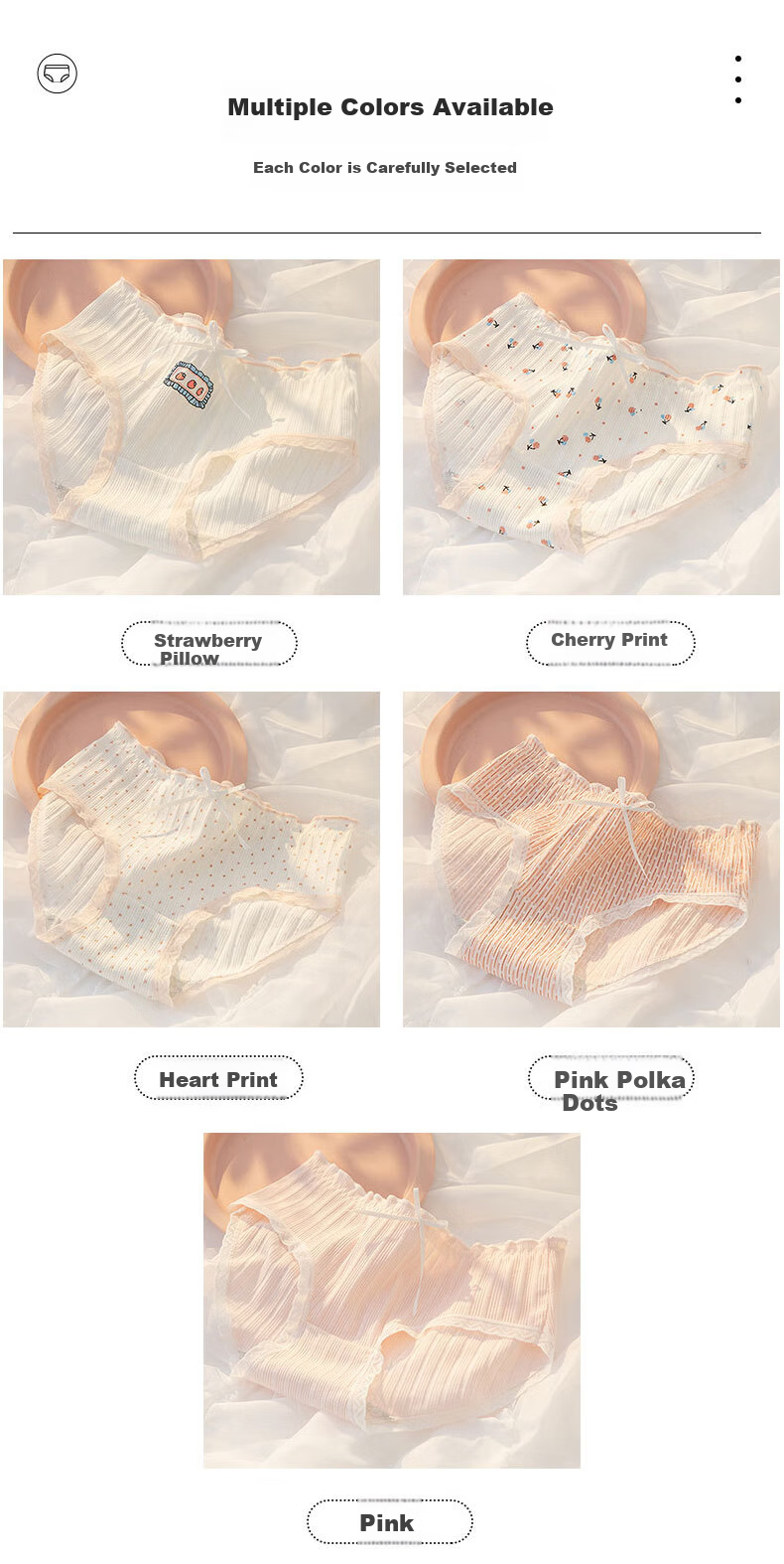 *Multiple colors available, each carefully selected: Strawberry Pillow, Cherry Print, Heart Print, Pink Polka Dot, Pink. Detailed design: Waistband with delicate lace trim, lightweight and exquisite stitching.*